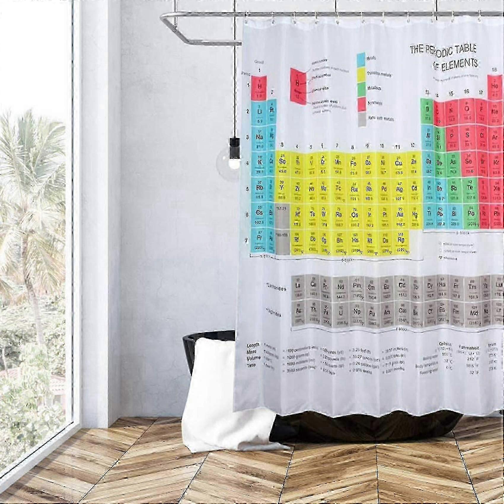 SIZE: 70.8 inchW x 70.8 inchL, can be used for bathtubs, shower stall, or any bathroom.MATERIAL: polyester fabric, water proof. Not see-through, your privacy always. Includes 12 plastic curtain hooks.FEATURE: Environmental material, no odor, durable, healthy to your family. A great gift Unique design, good choice for giving your bedroom a look. The pattern is vivid and durable, it will not fade after even years .EASY CARE: Dry cleaning or washing with cold water, Tumble dry low, do not bleach or tumble dry.Features:Periodic table of elements to a beautiful appearance for your bathroom decorSpecifications:Color: white, yellowMaterial: PolyesterSize: 180cm x 180cmNote:Before hanging, immerse the curtain in lukewarm water to remove the creasesPlease keep ventilated after bathing to dry the curtain.How to a the suitable size shower curtain for your bathroom?1.Shower curtain width is equal to the bathroom width,or greater than 10-30cm.2.The height of the shower curtain is about 2-5cm from the ground.3.The shower curtain is about 1-2cm lower than the water tank.Package Contents:1 x Shower curtain12 x HooksOnly the above package content, other products are not included.Note: Light and different displays may the color of the item in the a little different from the real thing. The measurement allowed error is +/- 1-3cm.