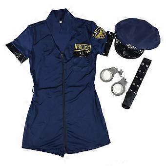 Blue Sexy Female Cop Officer Uniform Police Costume Halloween Party Cosplay Policewomen Fancy Costume Full Set