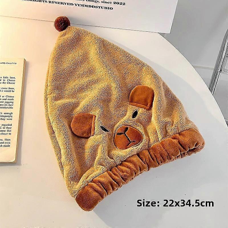 Capybara Dry Hair Cap Coral Fleece Quick Dry Towel Super Absorbent Capybara Head Turban Cute Animal Soft Hair Wraps for Women