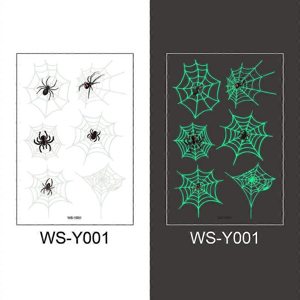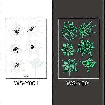 5 Sheets Halloween Luminous Spider Web Temporary Tattoo Stickers Fluorescent Green 3D Body Face Makeup Disposable Fake Tattoos