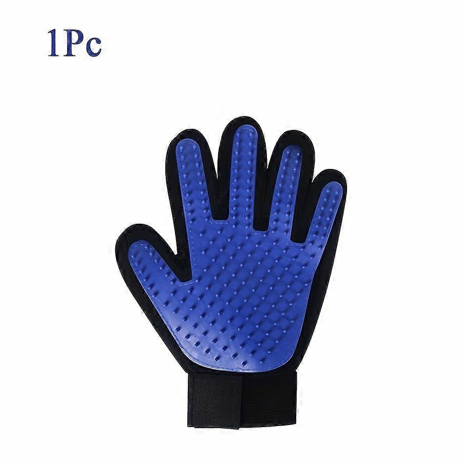 Pet Deshedding Grooming Gloves Silicone Five-Finger Massage Nodes Waterproof for Dog Cat All Hair Home Bath - Blue Palm Design