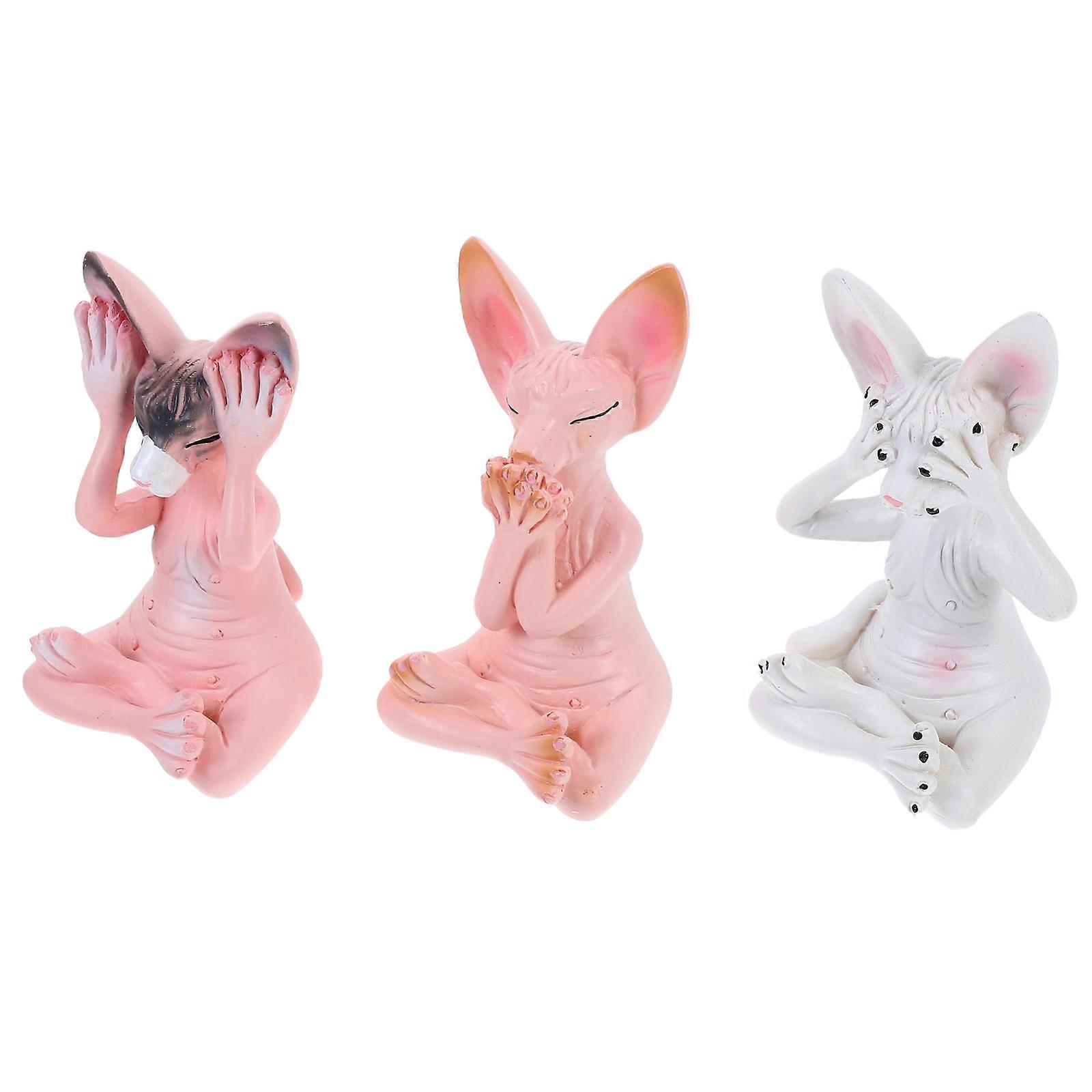 Assorted Color Resin Cat Figurines for Meditating Decor 3Pcs Set