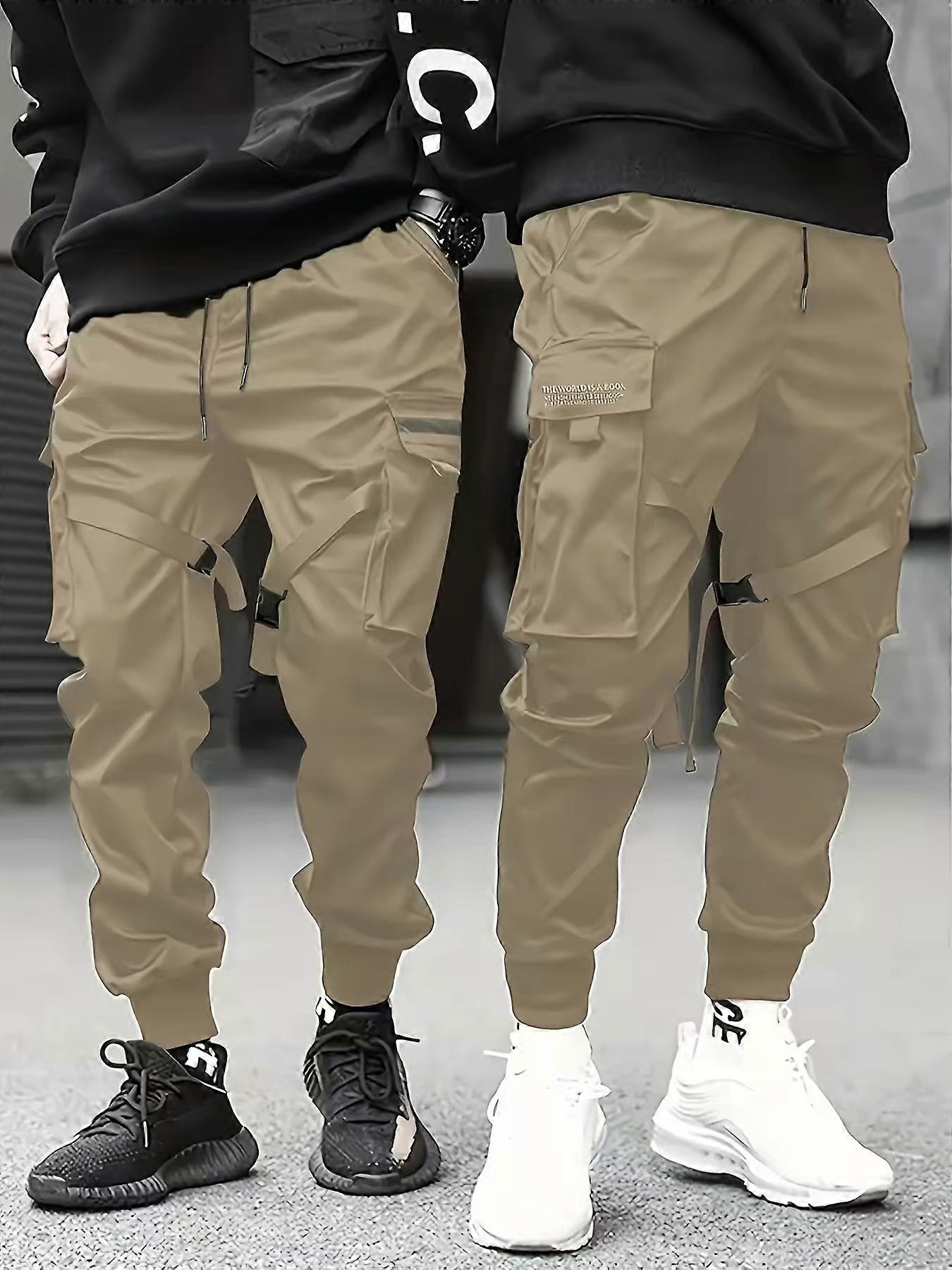 2025 High Street Multi Pocket Cargo Pants Men's Casual Loose Fit Drawstring Workwear Pants Joggers for Spring Autumn Streetwear