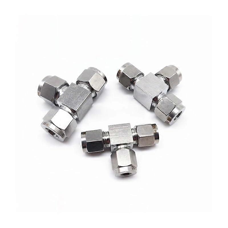 304 Stainless Steel Double Ferrule Tee 22mm Tube Hex 3Way T Joint Compression Fitting for Plumbing