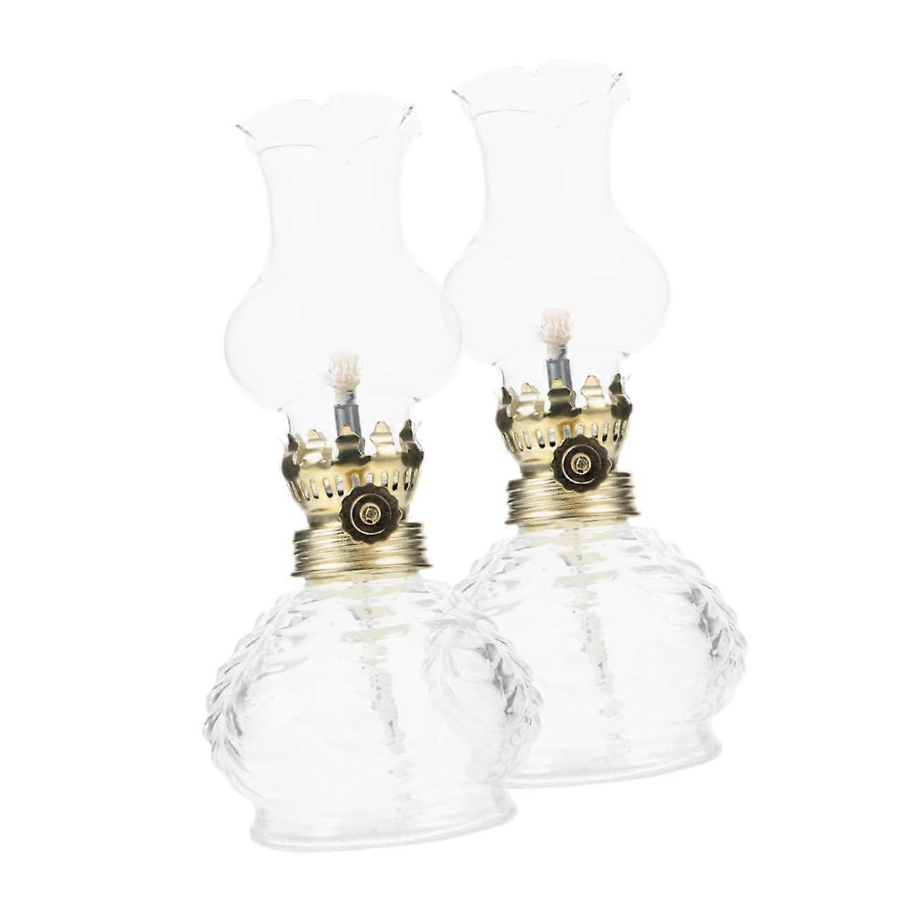 2pcs Vintage Oil Lantern Glass Kerosene Hurricane Lamps Rustic Style for Home Indoor Decor