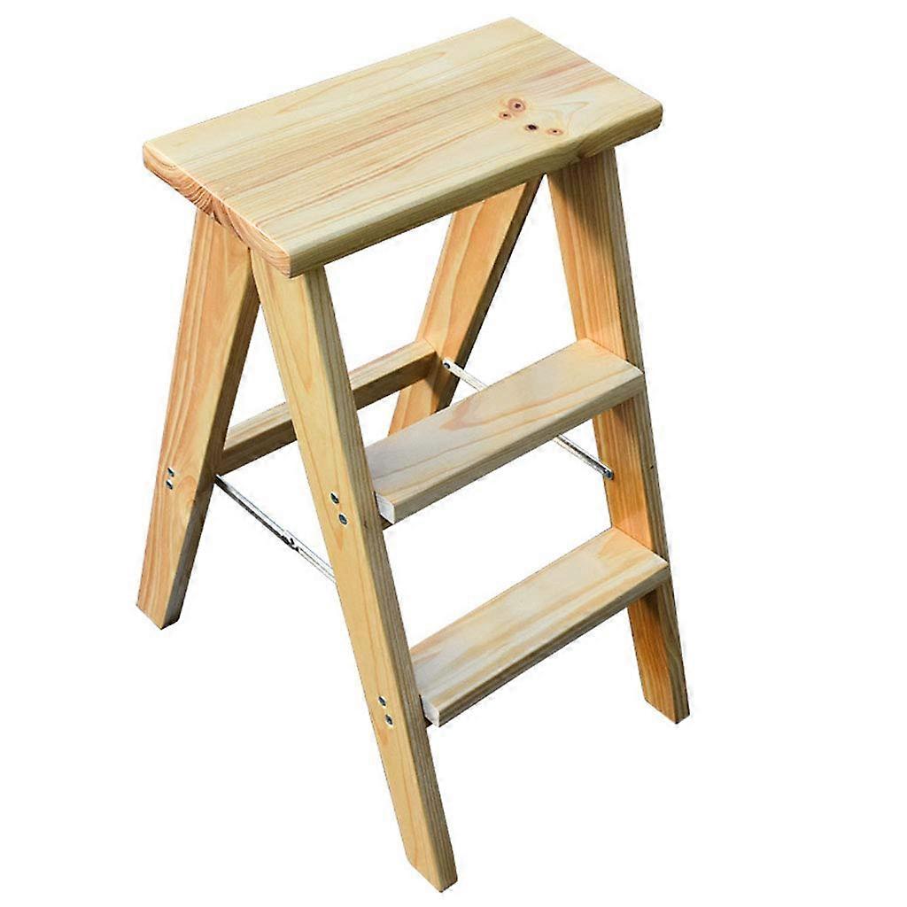 Wooden Ladder Stool Folding Kitchen Step Chair Solid Wood SpaceSaving Seat for Home Dining