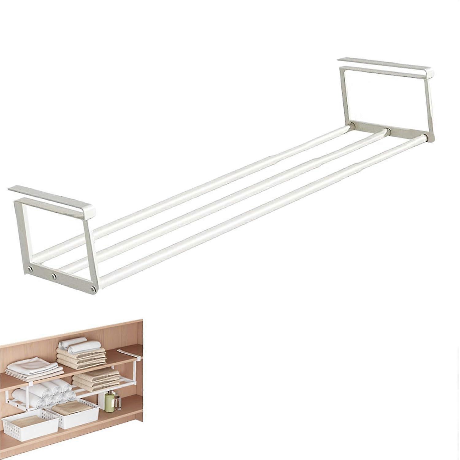 Adjustable Storage Shelf with Expandable Design, Carbon Steel Kitchen Organizer Rack, White Large