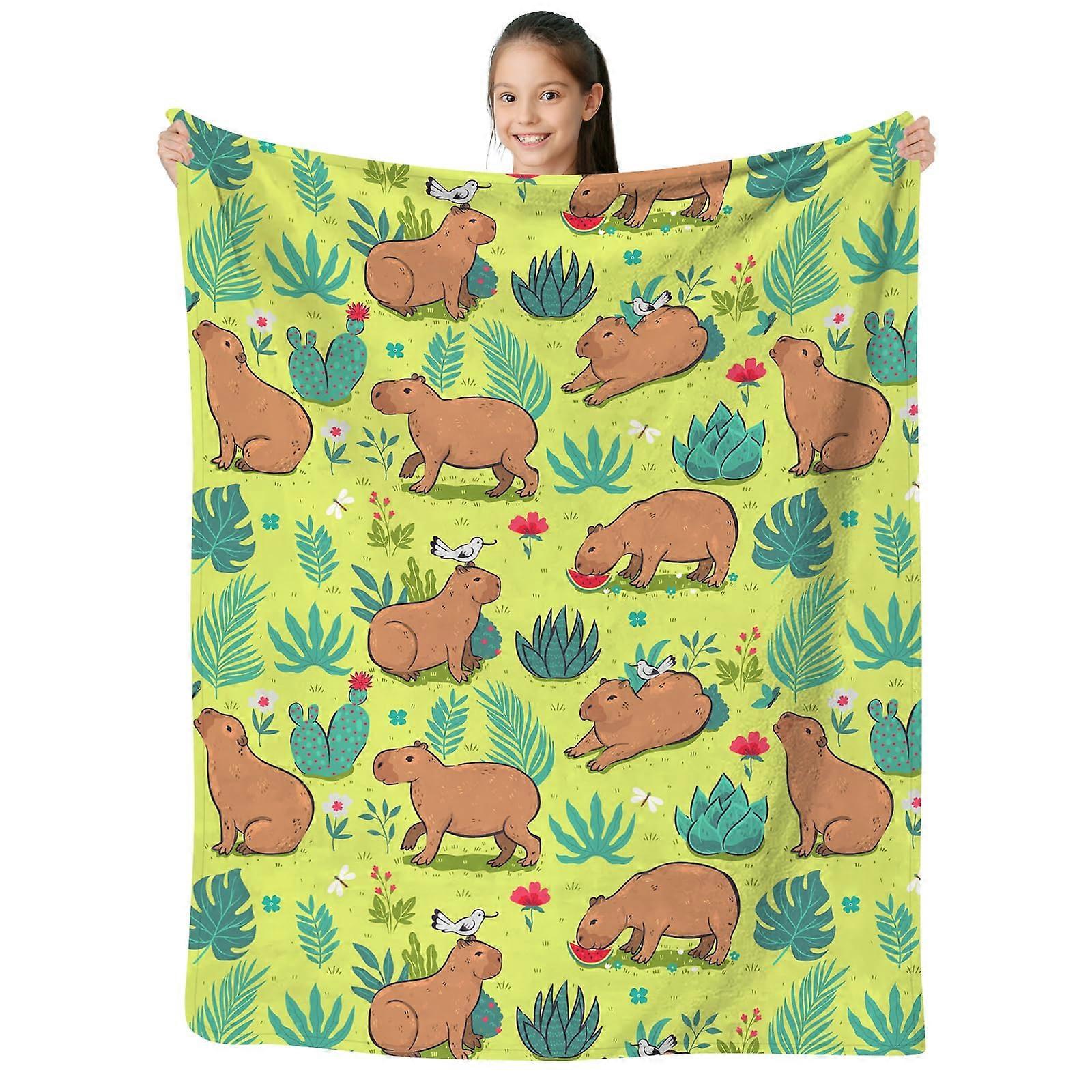 Soft Cozy Flannel Throw Blanket Cute Capybara Print Warm Lightweight for Couch Bed Sofa 50'x40'