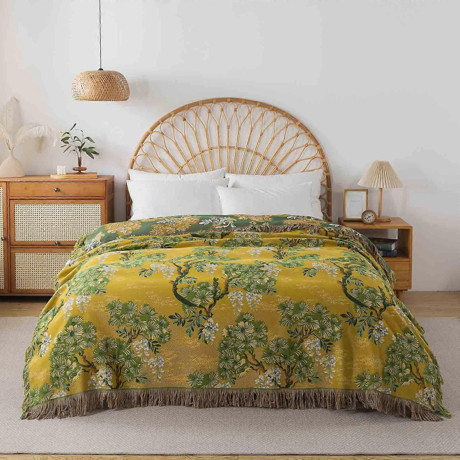 Boho Cotton Throw Blanket 80x90, Organic Muslin with Tassels, Large AllSeason Bed and Sofa Decor