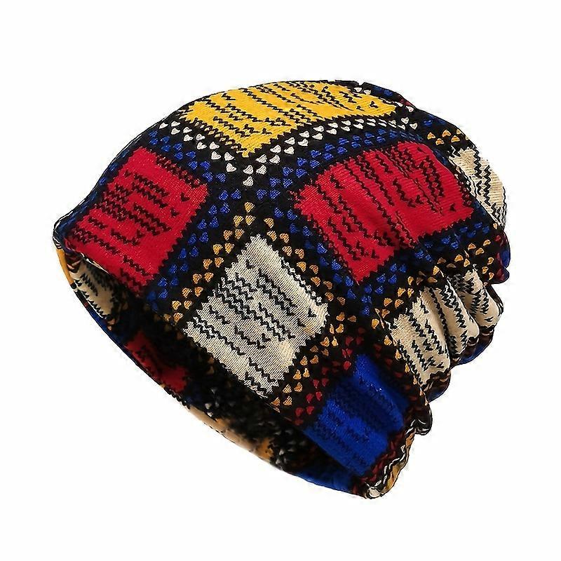 Autumn & Winter Vintage Printed Beanie - Classic Color Block Elastic Slouchy Skull Cap Boho Neck Gaiter Windproof for Women Men