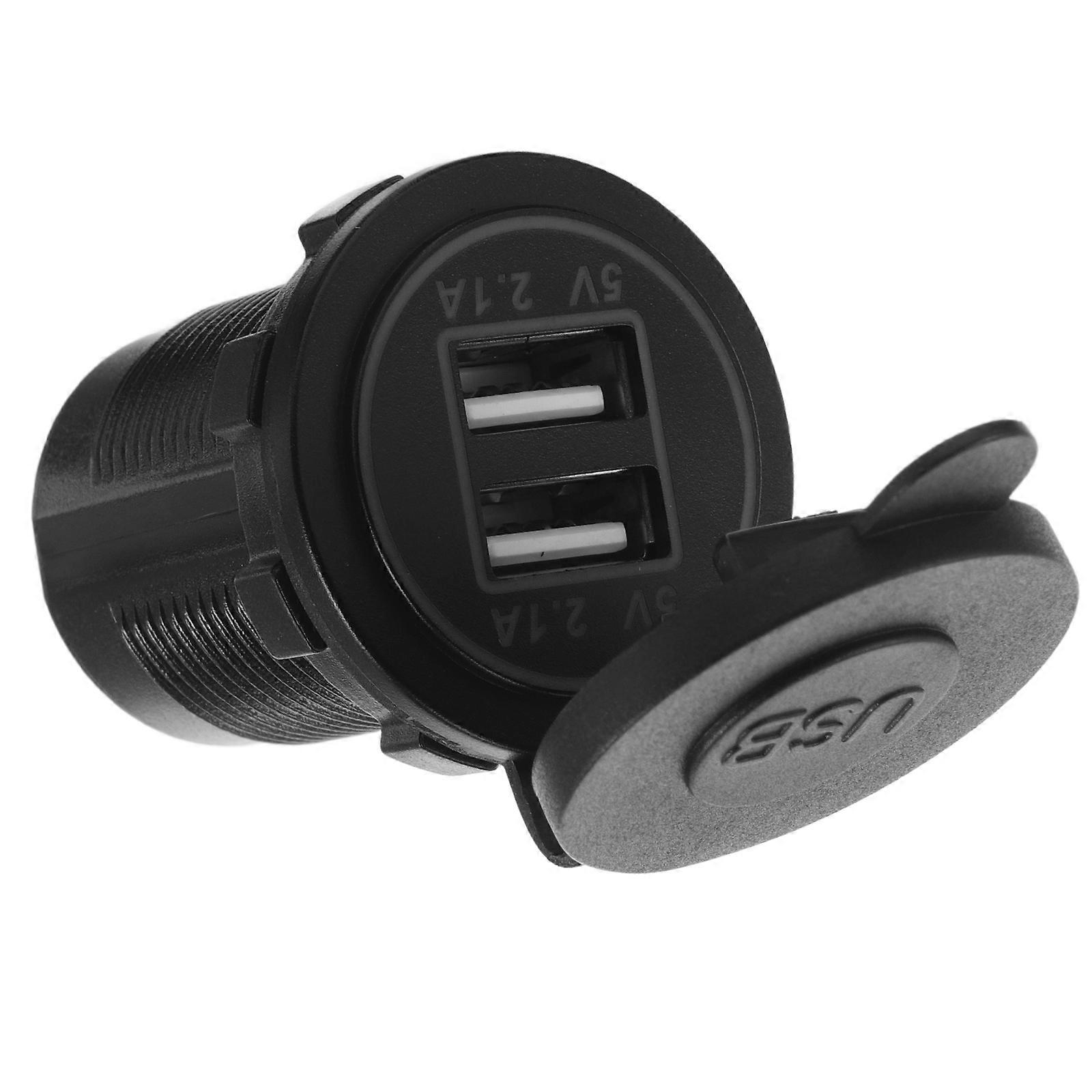 Motorcycle riders will appreciate the convenience of this USB phone charger. Its compact design fits seamlessly on your bike, providing a reliable power for your phone and other gadgets. The fast-charging capability ensures your devices are ready to use when you need them. Features -Color:Black -Material:Plastic -Size:5.50X3.50X3.50cm/2.16X1.38X1.38in -Input: 12v-24v -Output: 5v 2.1a -Fast charging technology: provide fast charging, reducing the time needed to charge your phone -Dual usb ports: features two usb ports, allowing you to charge two devices at once, making it convenient for users with multiple phones or gadgets -Waterproof feature: the waterproof design ensures that the charger remains functional in wet conditions, providing reliability and durability -Clear display: the display offers excellent visibility at night, enhancing the using experience -Versatile functionality: in addition to charging, it serves as a car phone holder, making it easier to use your phone for navigation and calls while driving Package list: 1 charger