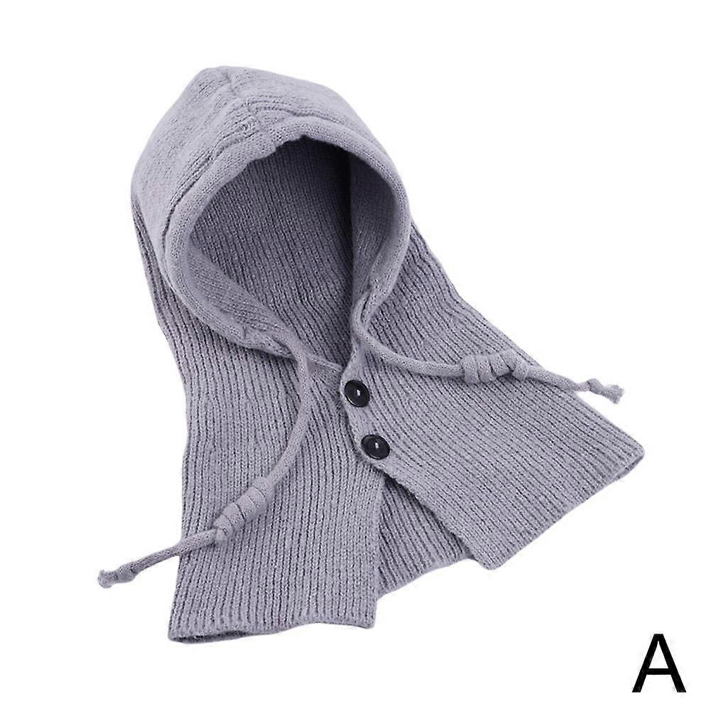 Winter Fashion Knitted Hooded Hat Women Grey Neck Cover Balaclava Beanies Korean Y2k Wool One-piece Pullover Hat for Ladies