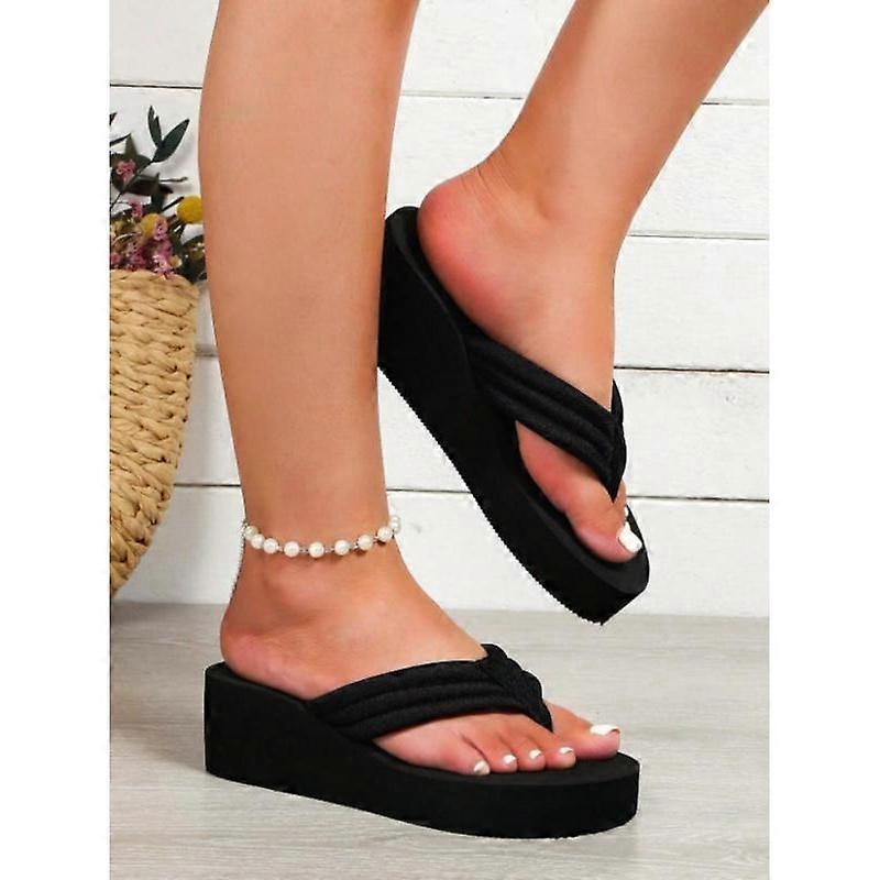 Women's Fashionable Plain Color Wedge Slides, Casual Comfortable Flat Sandals for Beach, All-match Toe Thong Sandals for Daily Wear, Walking