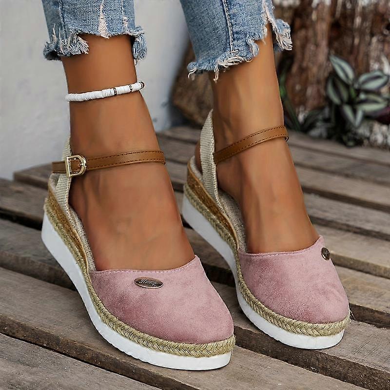 [Summer Espadrille Wedge Sandals] Casual Summer Espadrille Wedge Sandals - Women's Closed Toe Canvas Ankle Strap Slingback Shoes Footwear Gi