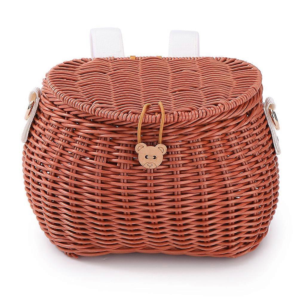 Bicycle Storage Basket Backpack with Lid Bike Scooter Tricycle Basket Adjustable Leather Straps for Daily Commuting