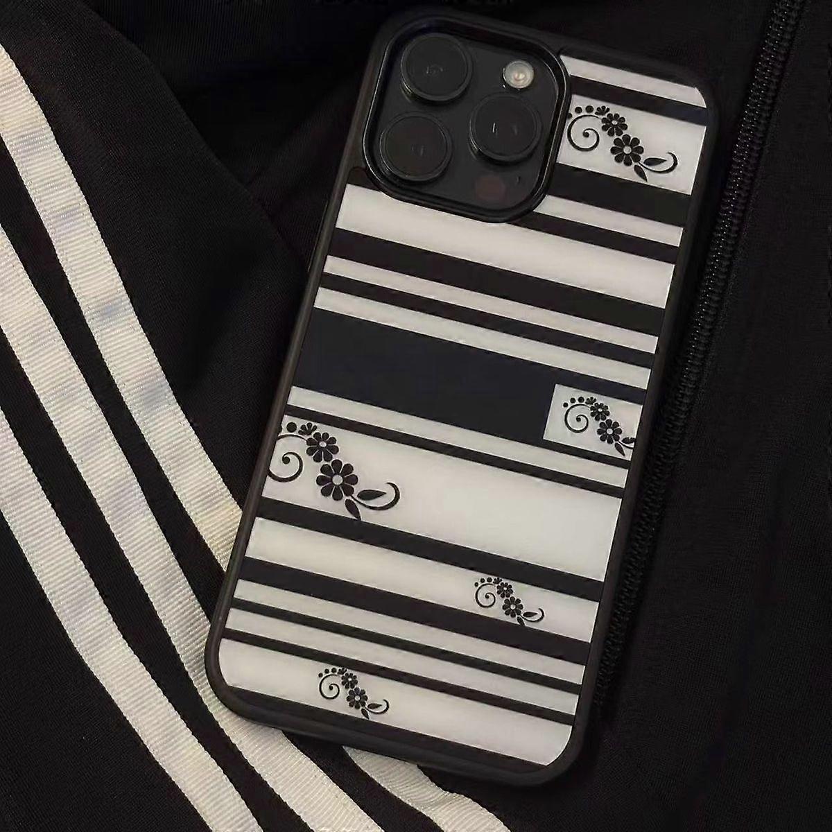 Korean Ins Premium Black White Striped Flower Phone Case For iPhone 16 15 14 13 12 11 Pro Max MIni Xr X XsMax 7 8 Plus Y2K Cover