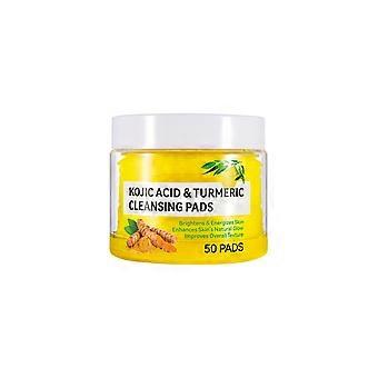50pcs Kojic Acid Turmeric Cleansing Pads Curcuma Longa Root Facial Sponges Exfoliating Pads Daily Cleansing Skin Care Product