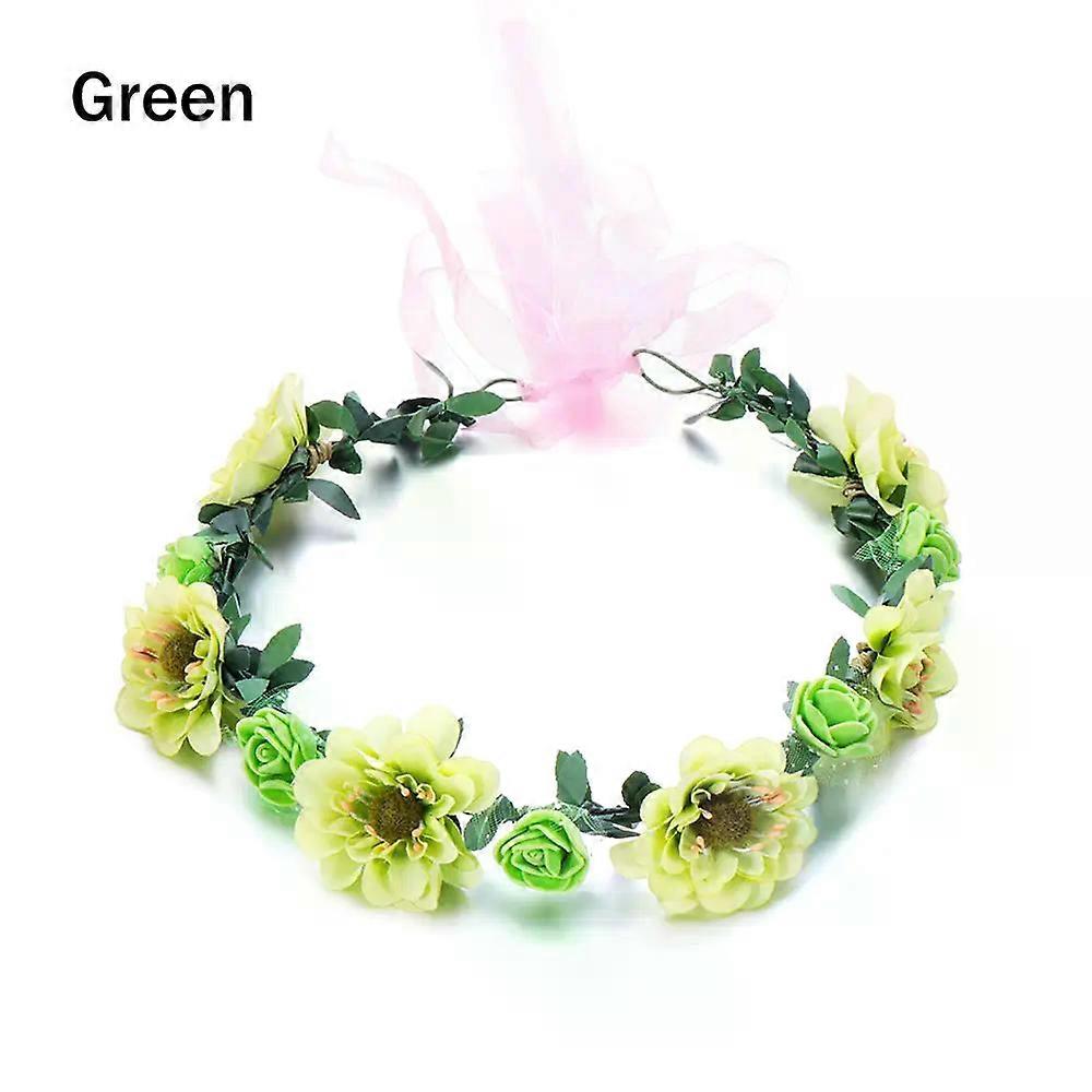 Fashion Bohemia Garland Rose Flower Crown Women Headbands Adjustable Ribbon Girls Floral Wreath Bridal Halo Hair Accessories