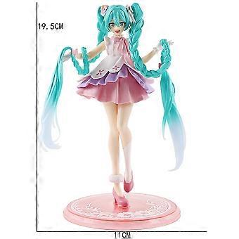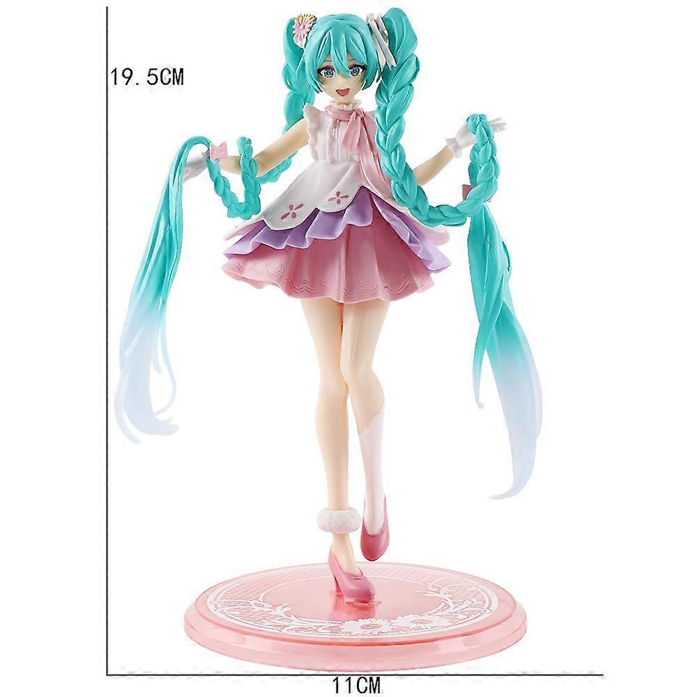 New Anime Hatsune Miku Virtual Singer Manga Figurines Green long hair pink skirt Kawaii girl PVC Action Figure Model Toy
