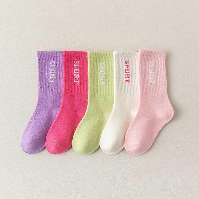 5 Pairs Children's Socks, Girls' Breathable Mid tube Socks, Autumn and Winter Students' Solid Color Sports Socks