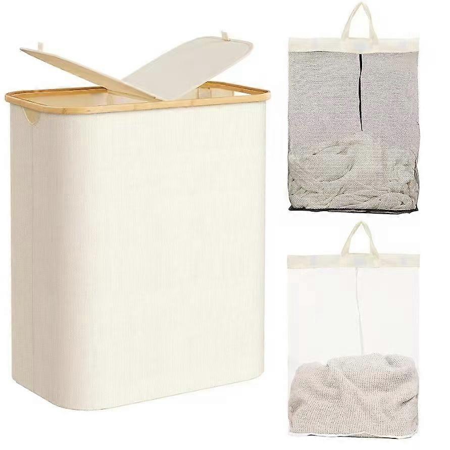 Oxford cloth foldable bamboo frame storage basket laundry basket with mesh bag large capacity storage
