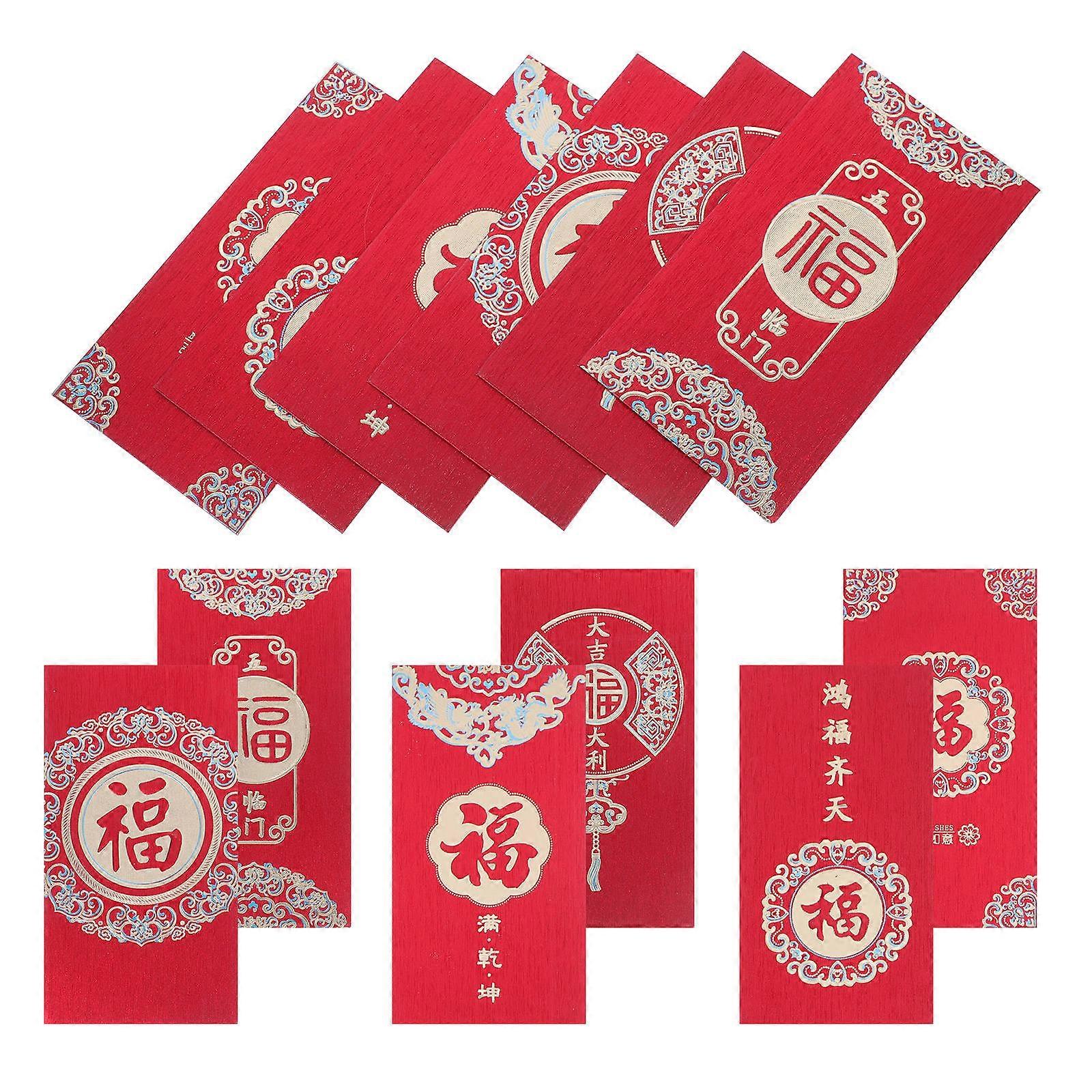 Our Lucky Money Red Pockets are designed to bring joy and good fortune to your New Year festivities. Featuring six different "Fu" character designs, these envelopes are crafted with paper materials and foil accents. They are for gifting money, , or small tokens, making them a versatile addition to your holiday traditions. Features -Color:Red -Material:Paper -Size:16.00X8.80X0.10cm/6.29X3.46X0.04in -These envelopes feature a -embossed "fu" character, blending traditional chinese aesthetics with modern design elements. -It is for new year celebrations, these envelopes are ideal for present, , and spreading good fortune. -With a total of envelopes included, you'll have more than enough to meet all your festive and present needs. -The set includes six of the "fu" character, providing a variety of options to suit different preferences. -Each envelope is crafted with luxurious embossing, adding an elegant and festive touch to your celebrations. Package list: x red envelope