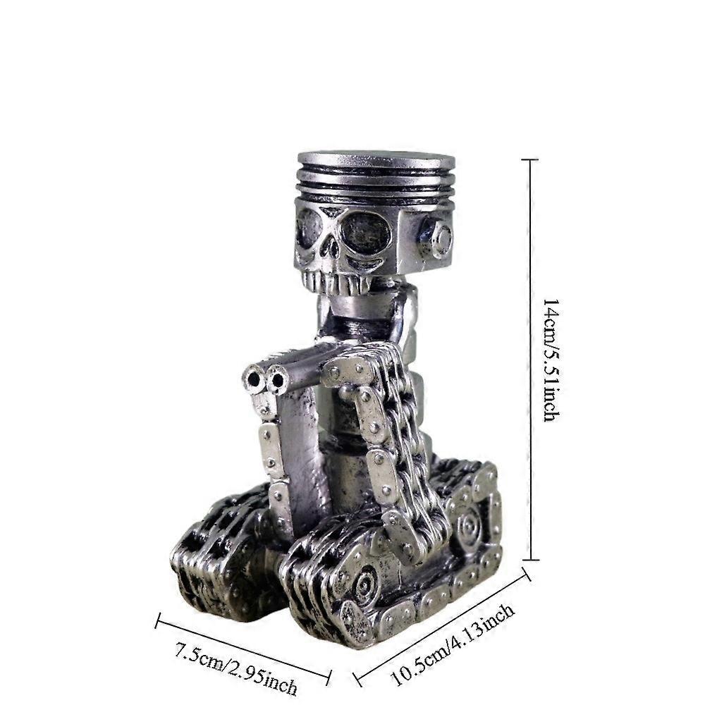 Piston Skull Face Figurines Bite Bullet Desktop Decoration Gear Metal Gloss Model Resin Craft Ornament Accessories Collectable