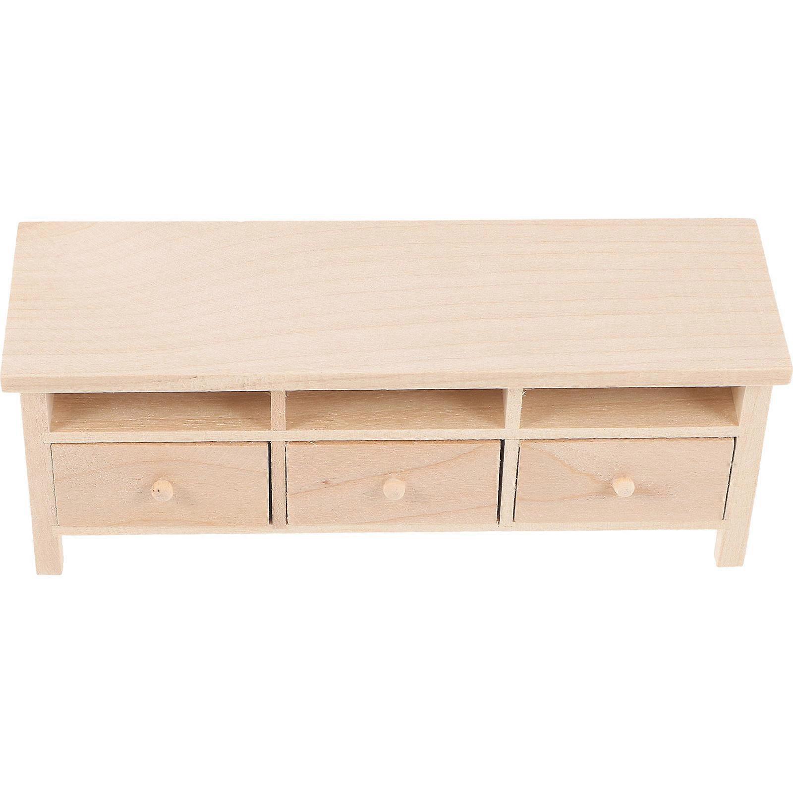 Beige Wood Mini TV Cabinet for Decoration 2Pcs Simulated Doll Furniture