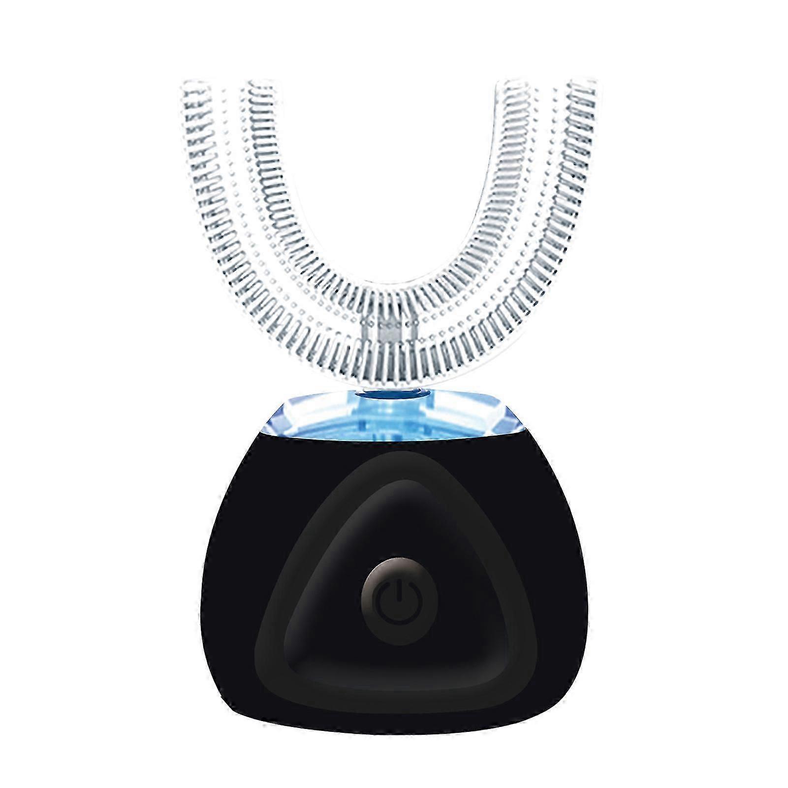 This u-shaped electric toothbrush designed for adult_s,brush your teeth in high frequency ultrasonic cleaning everyday,which give a quick and comfortable brushing experience for your teeth.Features:With 6000rpm high-frequency ultrasonic vibration,it can contact the teeth and gums 360 degrees in all directions to quickly and deeply clean the surface and interior of the teeth.Removable food-grade silicone U-shaped brush head completely surround your teeth.fits most adult's mouth.One button control to start brushing,smart 30s timing to complete 360 degree oral cleaning.30s smart timer to automatically turns off after 30 seconds of each tooth brushing.Scientifically brush your teeth to protect your teeth.4 teeth cleaning modes can be adjusted as you needed.Includes strandard brushing mode,massage brushing mode,strong brushing mode and 15-minutes whitening mode.Blue light whitening mode,use with whitening gel(not included) to help teeth whitening.Built-in 200mAh large capacity battery,15 days using with 90 minutes of charging. Come with a charging base and charging cable.Easy charging at anytime.You just put the toothbrush onto charge base,and connect your plug(not included) with provided chaging cable.Low battery indicator remindes you recharge the toothbrush timely.IPX7 waterproof design,easy to clean and reuse.Memory function help to autimatically enter into the mode as the last time you set when you turn on the toothbrush.Compact and portable design,suitable for indoors and outdoors,like home,office,travel,camping,etc.Specification:Color: Black / Pink / Dark Blue / Light Blue / White (optional)Material: Food grade silicone + PPWaterproof: IPX7Rated Voltage: 3.7 VRated Power: 6.3 WVibration Frequency: 6000 rpmBattery Capacity: 200 mAhCharging Time: approx. 90 minSize: 107 * 62 * 31 mm / 4.2 * 2.4 * 1.2 inWeight: approx. 118 g / 4.2 ozPackage Size: 201 * 111 * 56 mm / 7.9 * 4.4 * 2.2 inPackage Weight: approx. 254 g / 9.0 ozPackage List:1* Electric Toothbrush (with a removable U-shaped brush head)1* Charging Base1* Charging Cable1* User ManualNOTE: Please keep the charging contacts dry.