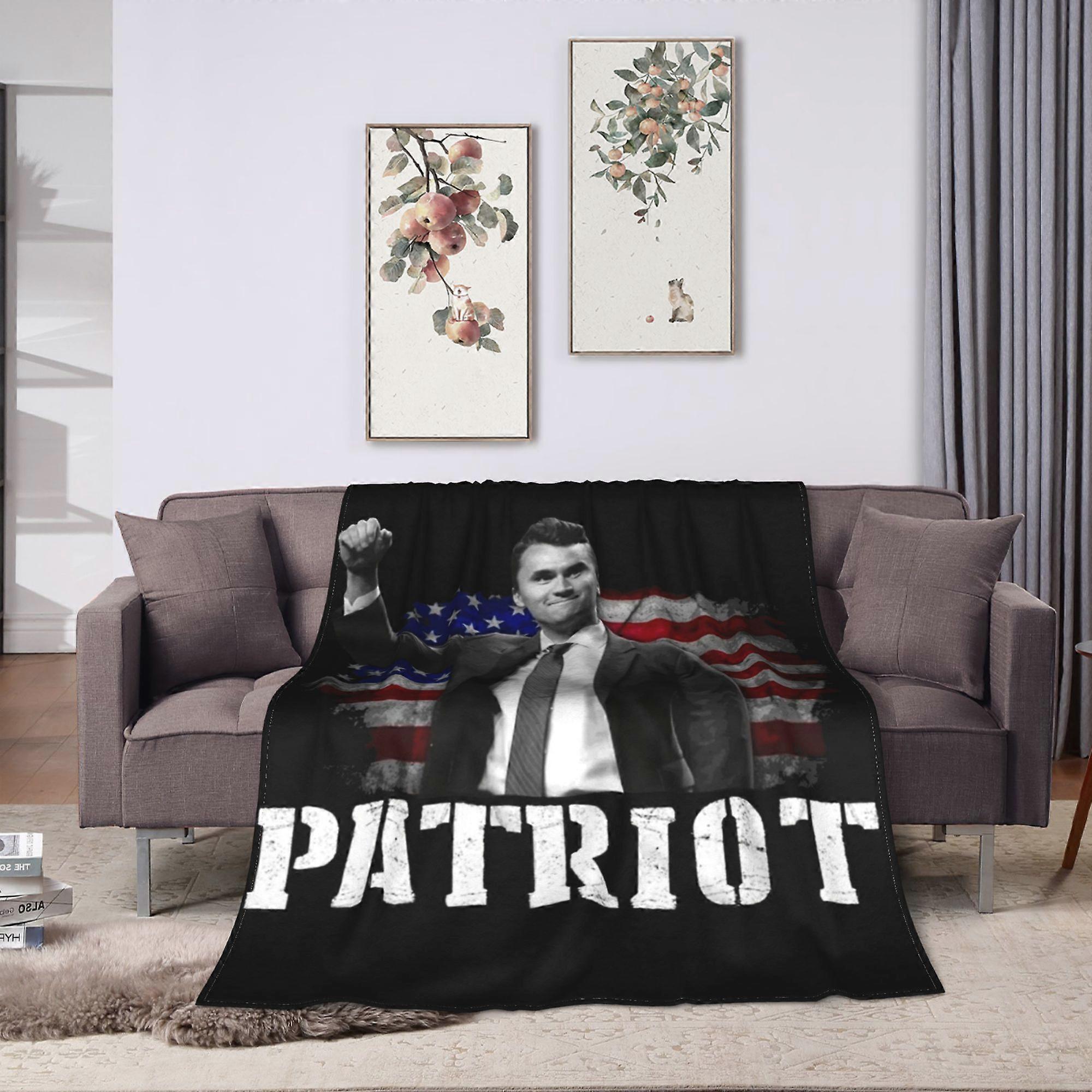 A True Patriot Charlie Kirk Blankets Flannel Winter USA Flag Multifunction Soft Throw Blankets for Home Outdoor Bedding Throws