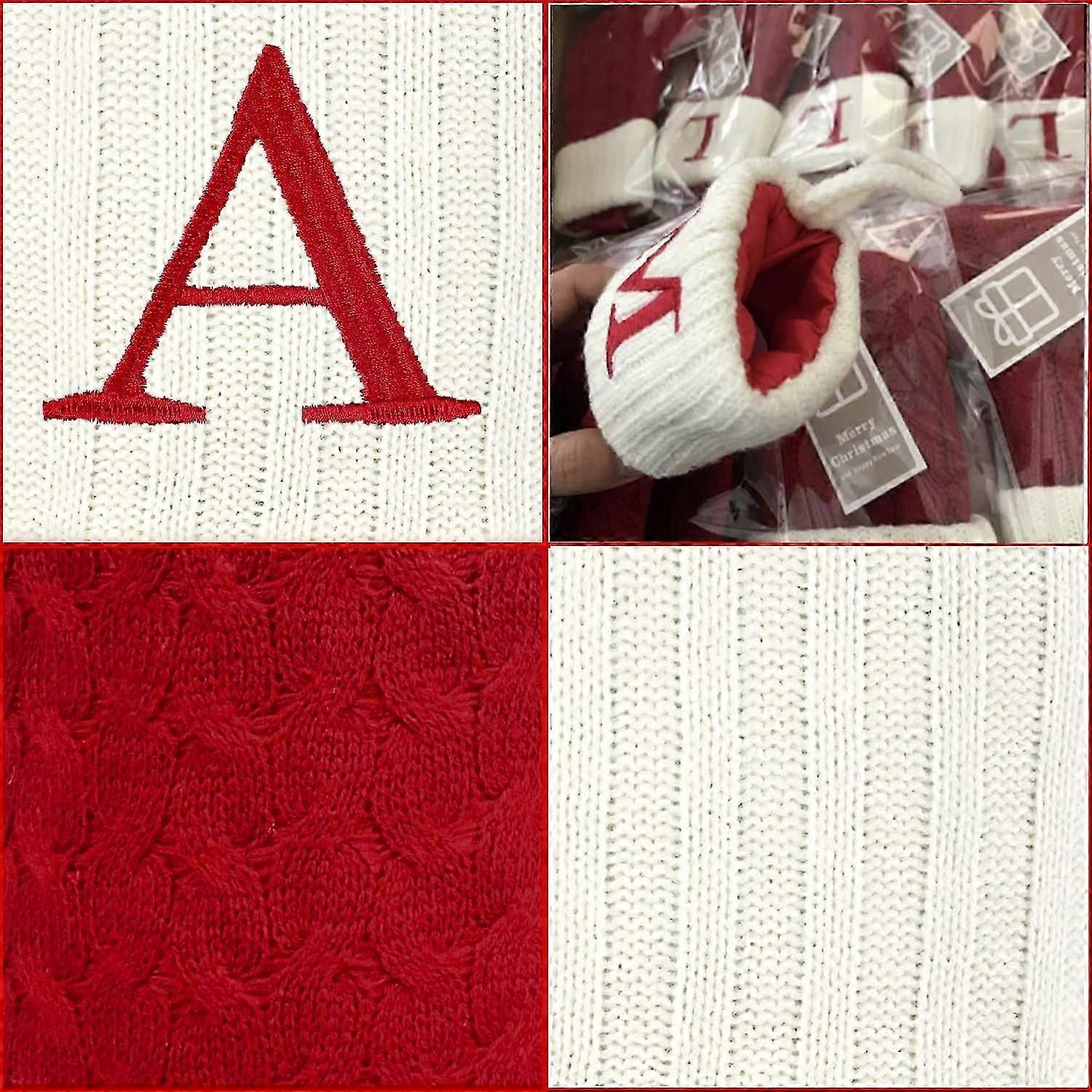 Christmas Stockings with Initials, 7.1 Inches Small Embroidered Letter Knit Red White Christmas Stocking for Family Holiday Decorations and Xmas Tree