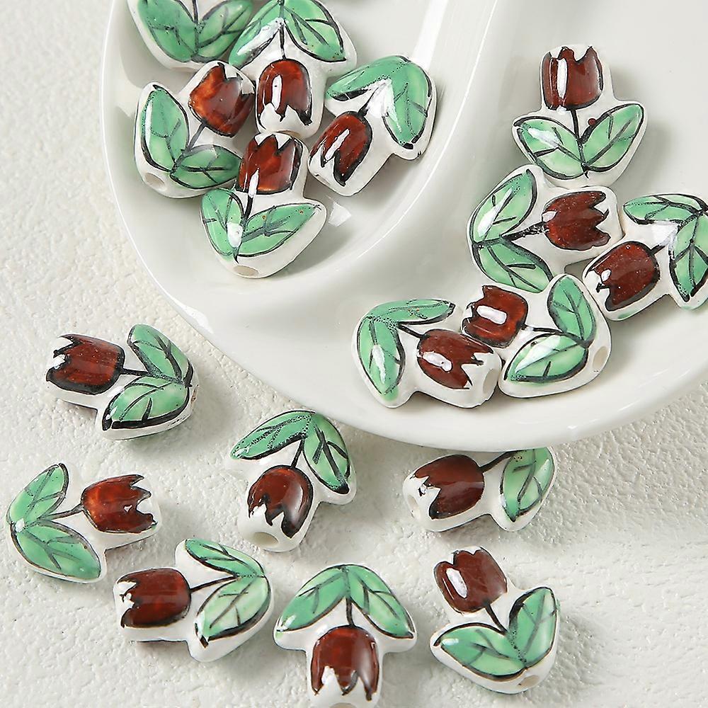 5PCS Hand Drawn Tulip Ceramics Beads Loose Spacer Beads For Jewelry Making DIY Bracelet Necklace Accessories