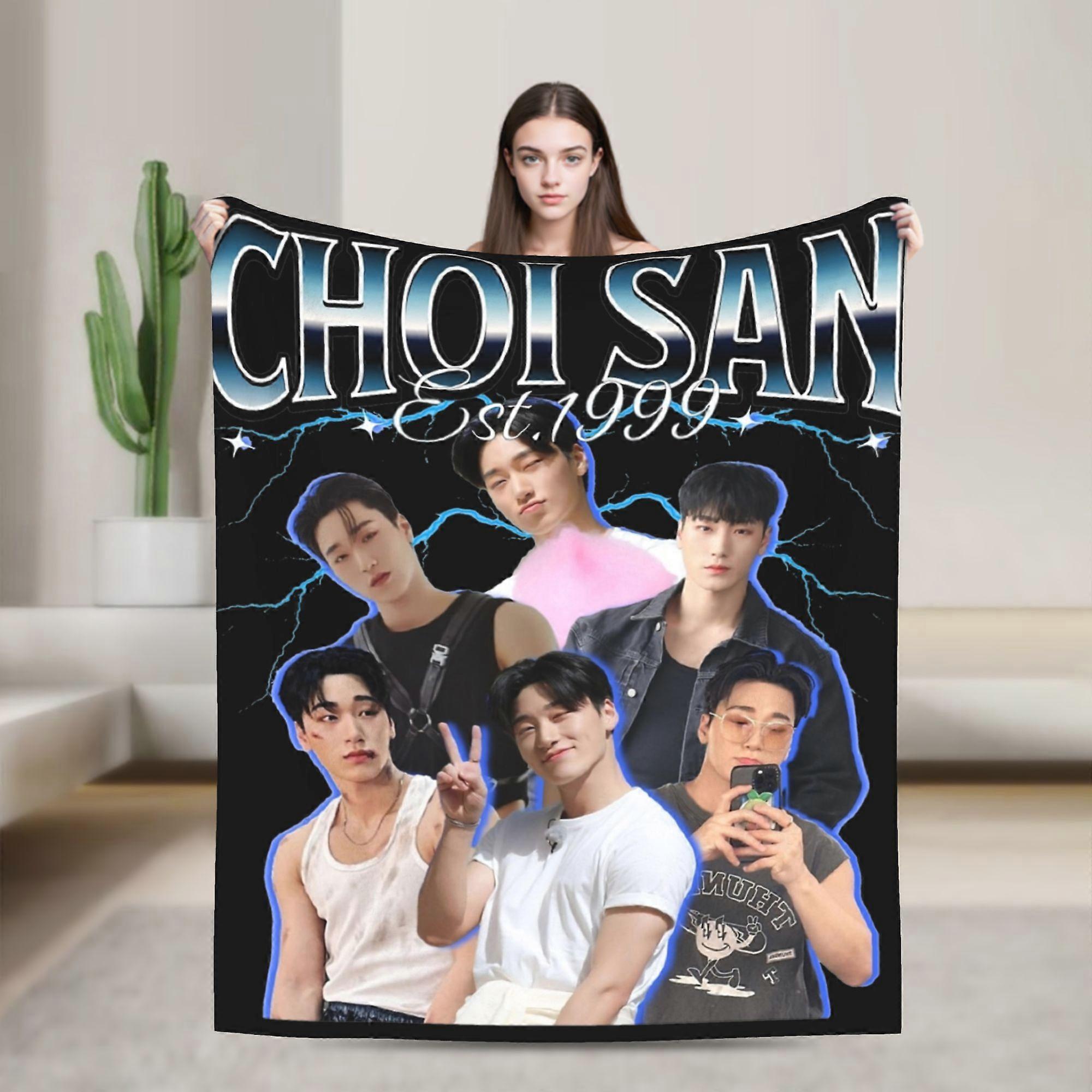 San 90s Ateez Kpop Band Blanket Velvet Autumn/Winter Multifunction Lightweight Throw Blanket for Sofa Bedroom Quilt