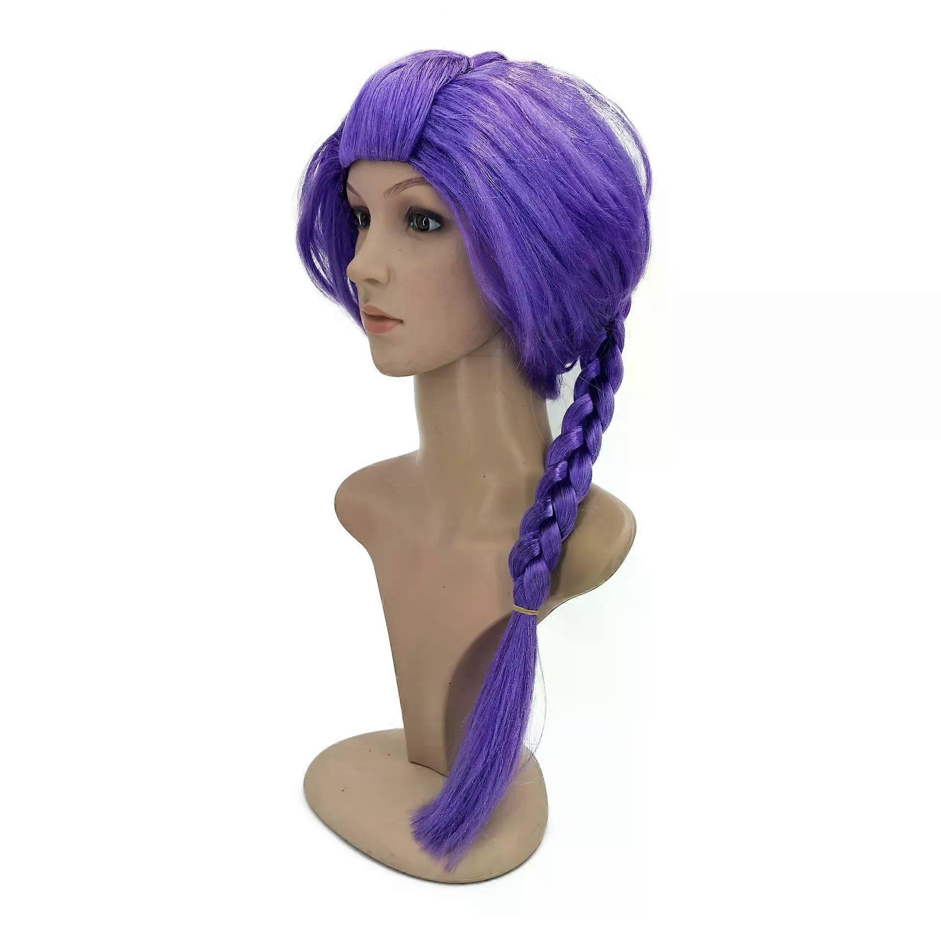 Purple Long Braid With Side Ponytail Integrated Tiger Mouth Clamp Children's Wig Halloween Costume Party Anime Cosplay