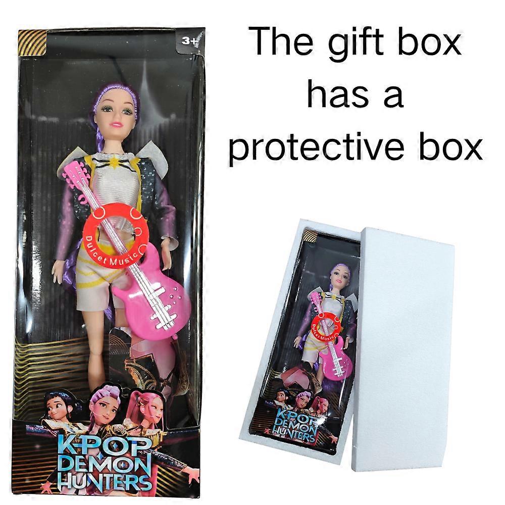 High Quality Kpop Demon Hunters Action Figure Toy Rumi Mira Zoey Black Suit with Song Plastic Doll for Girls Fans Christmas Gift