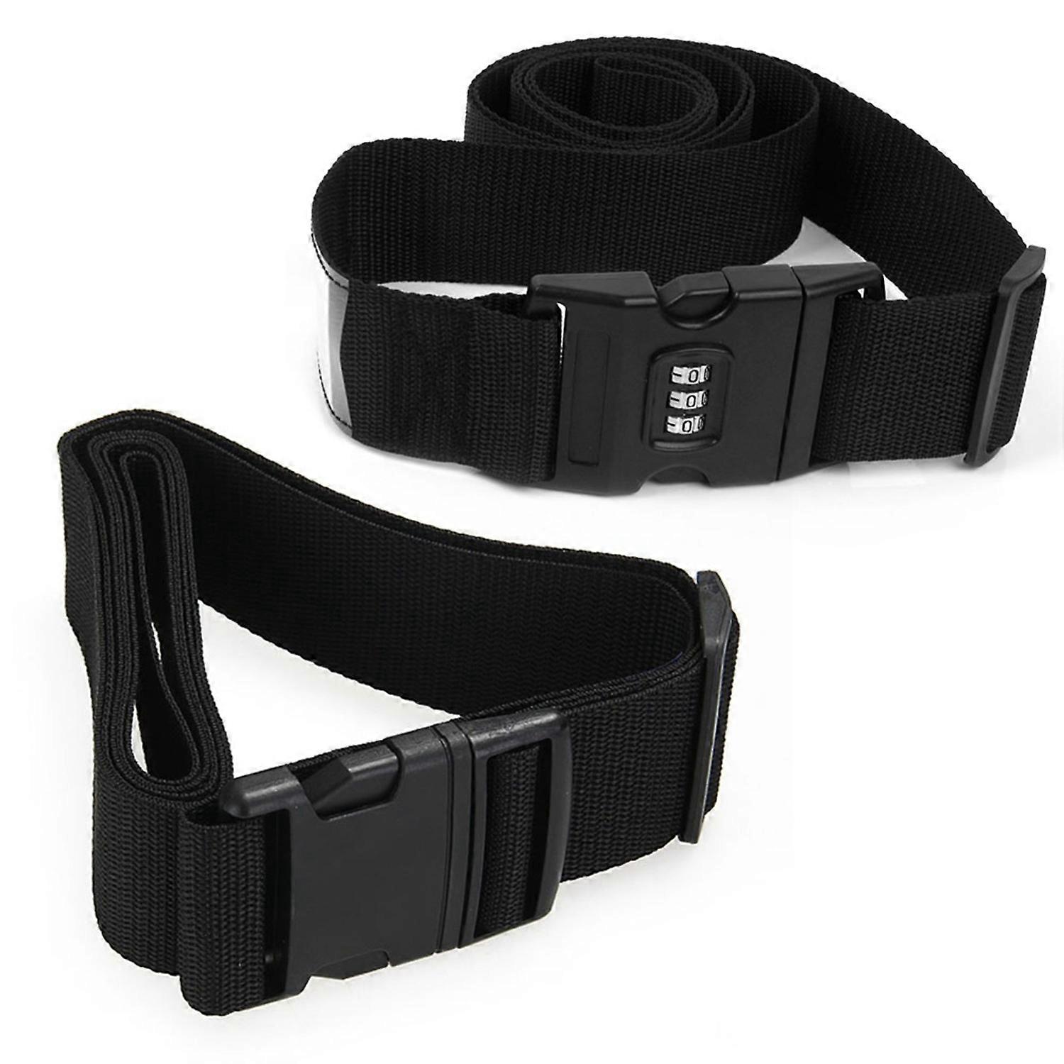 Luggage Belt Strap Belt Cord Rope Black for Suitcase Travel Bag 2M with Baggage Belt Tie Down Travel Secure Lock Black