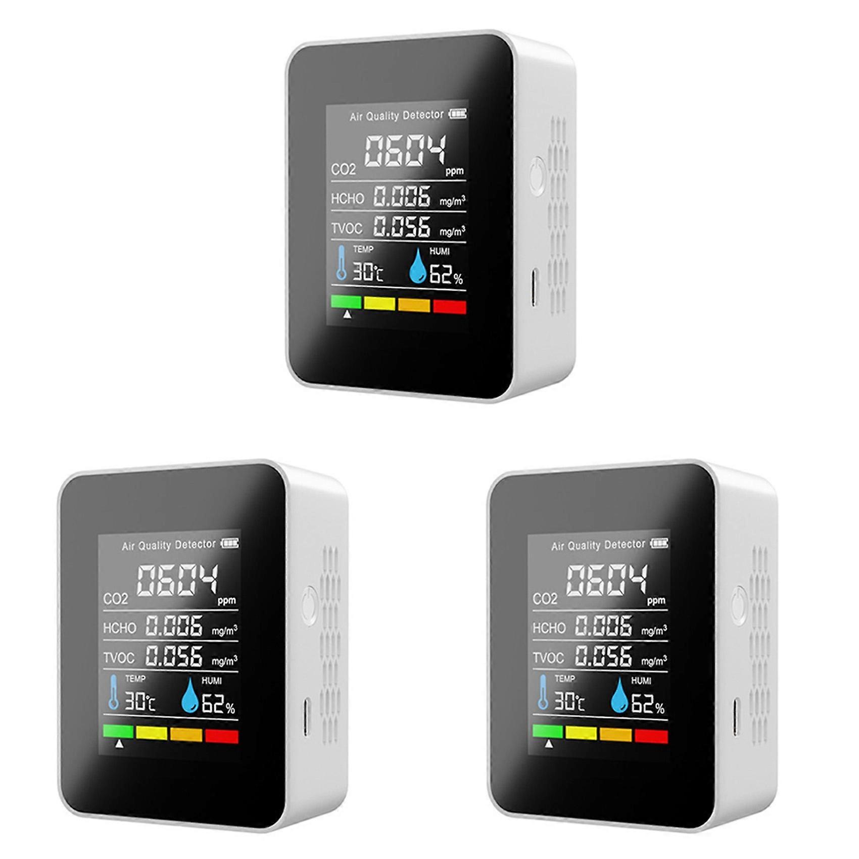 3X 5 In1 CO2 Meter Digital Temperature Humidity Tester Carbon Dioxide Detector Air Quality Monitor TVOC HCHO Analyzer-B