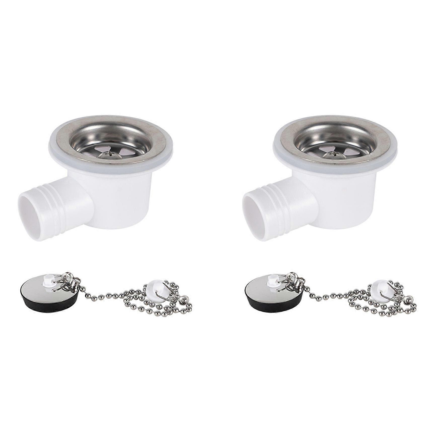 2X Sink Waste Drain Plug Hole Angle Fitting, Waste Plug Sink Basin Drain Filter for Motorhome Boat, Without Tube