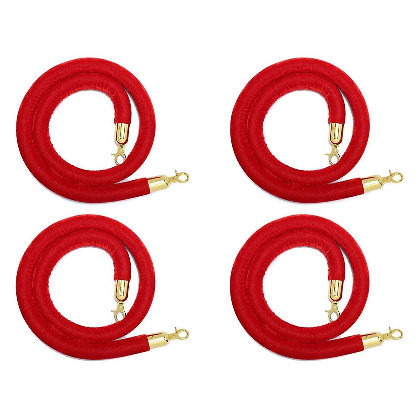 4 Pack Velvet Stanchion Rope with Gold Hooks, Crowd Control Rope Safety Barrier Red Carpet Decoration, 5 Feet Red