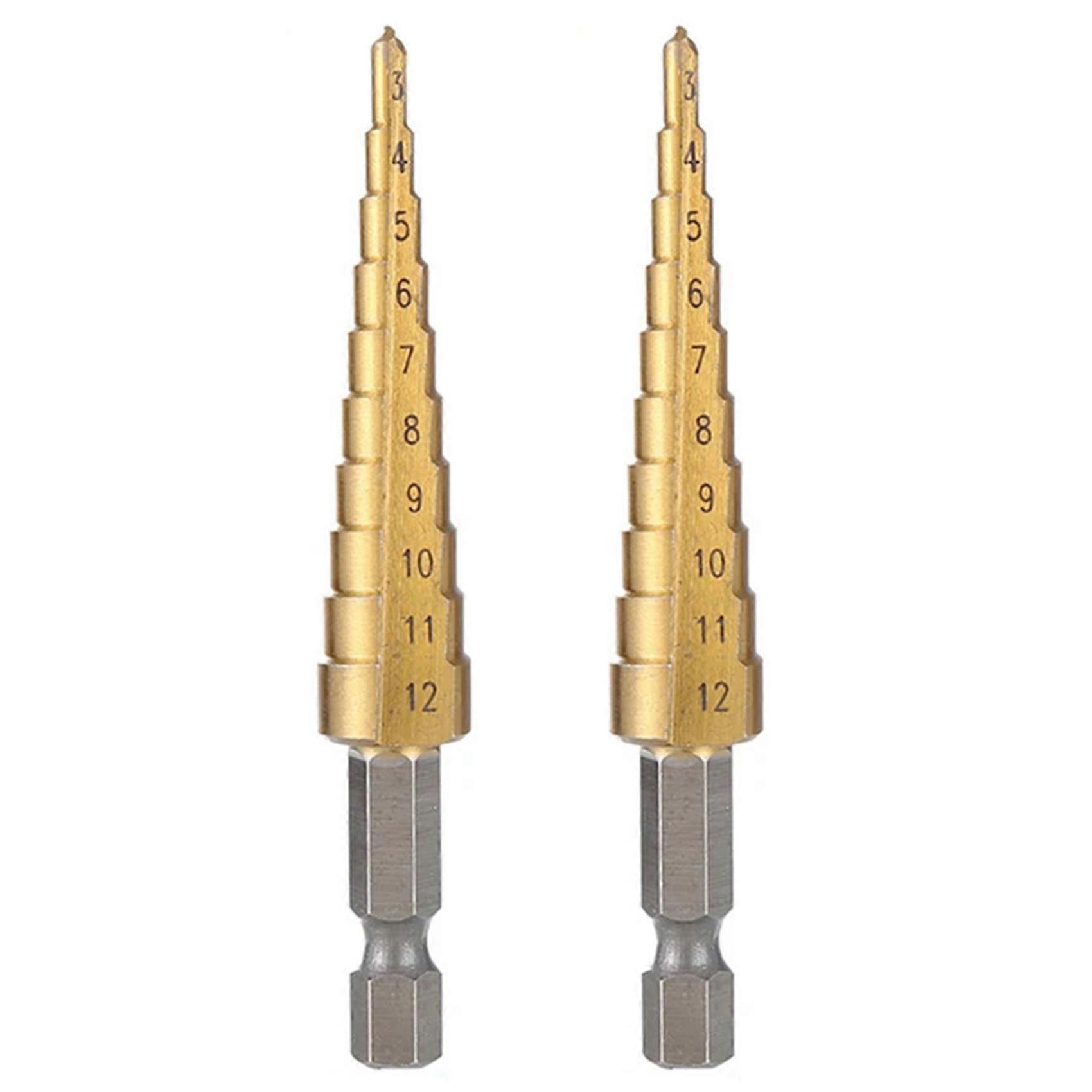 2pcs 3-12mm HSS Straight Groove Step Drill Bit Wood Metal Hole Cutter Core Drill Bit Pagoda Drill Bit