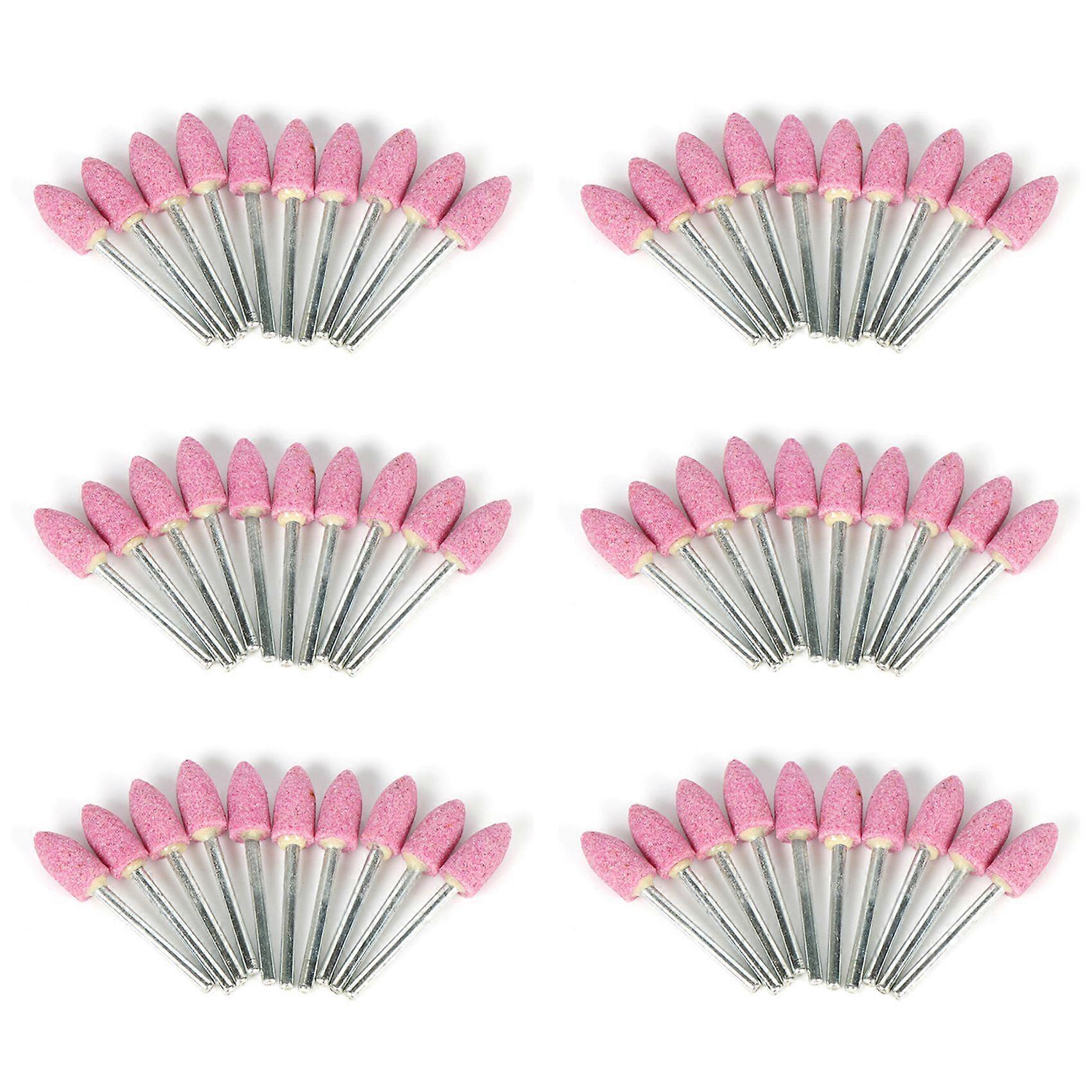 60Pcs Abrasive Mounted Stone for Dremel Accessories Grinding Stone Wheel Head for Dremel Rotary Tools Bullet-Shape Pink
