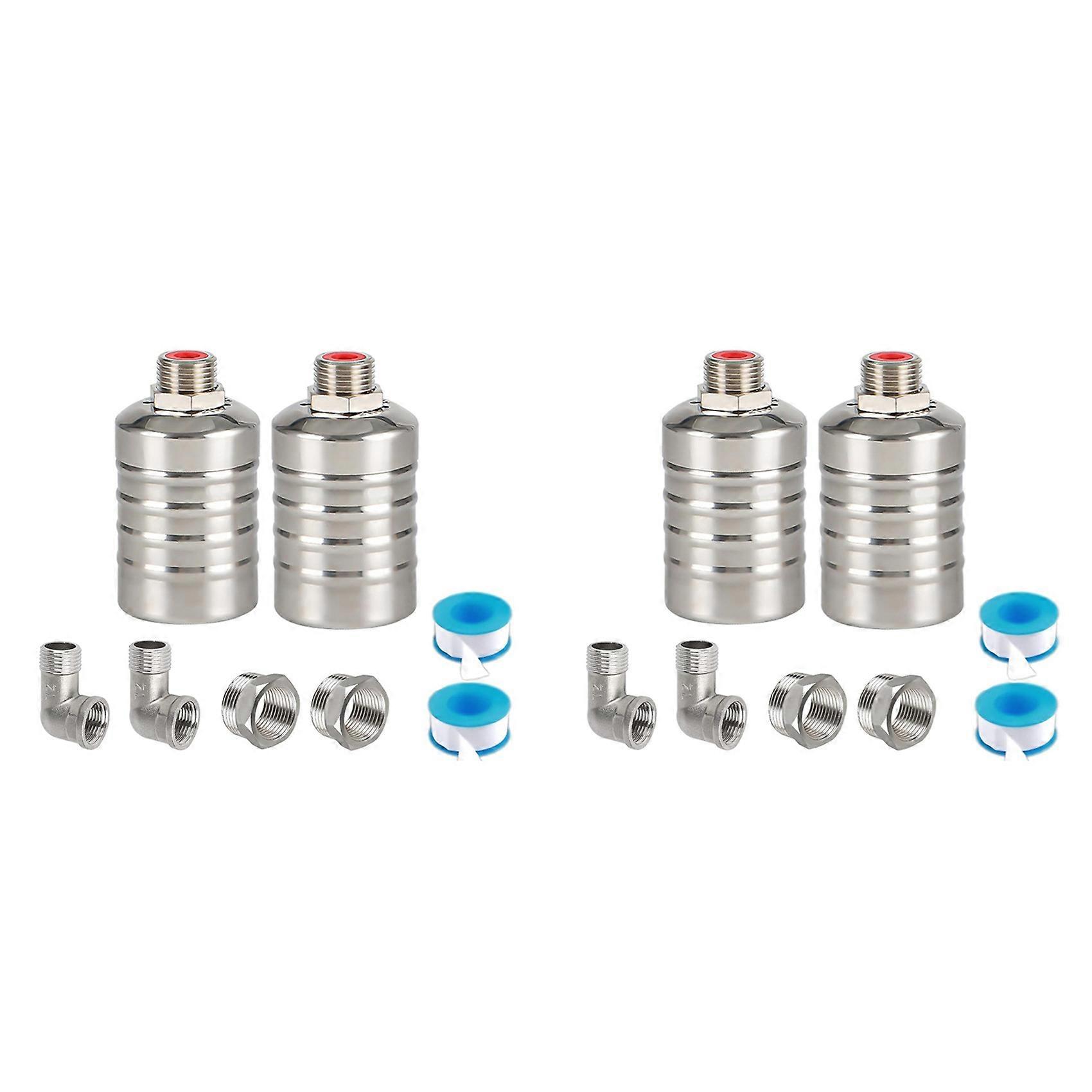 4 Pack 1/2inch 3/4inch Auto Fill Shut Off Water Tank Float Valve, 304 Stainless Steel Water Level Control Valve