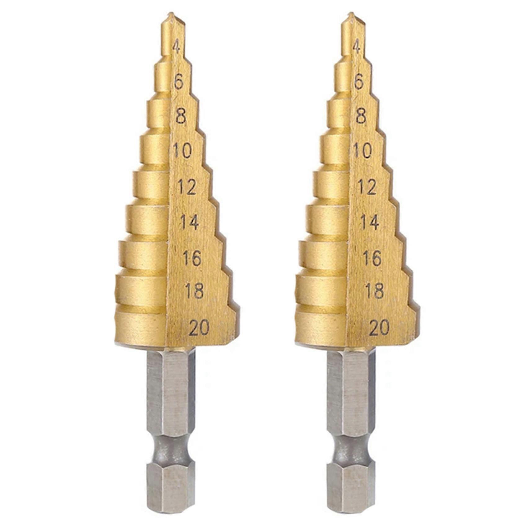 2pcs 4-20mm HSS Straight Groove Step Drill Bit Wood Metal Hole Cutter Core Drill Bit Pagoda Drill Bit