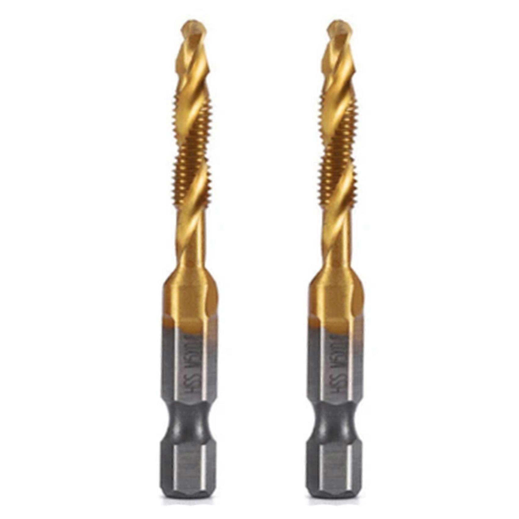 2pcs M5x0.8mm Hex Shank Titanium Plated HSS Screw Thread Metric Tap Drill Bits Screw Machine Compound Tap Open