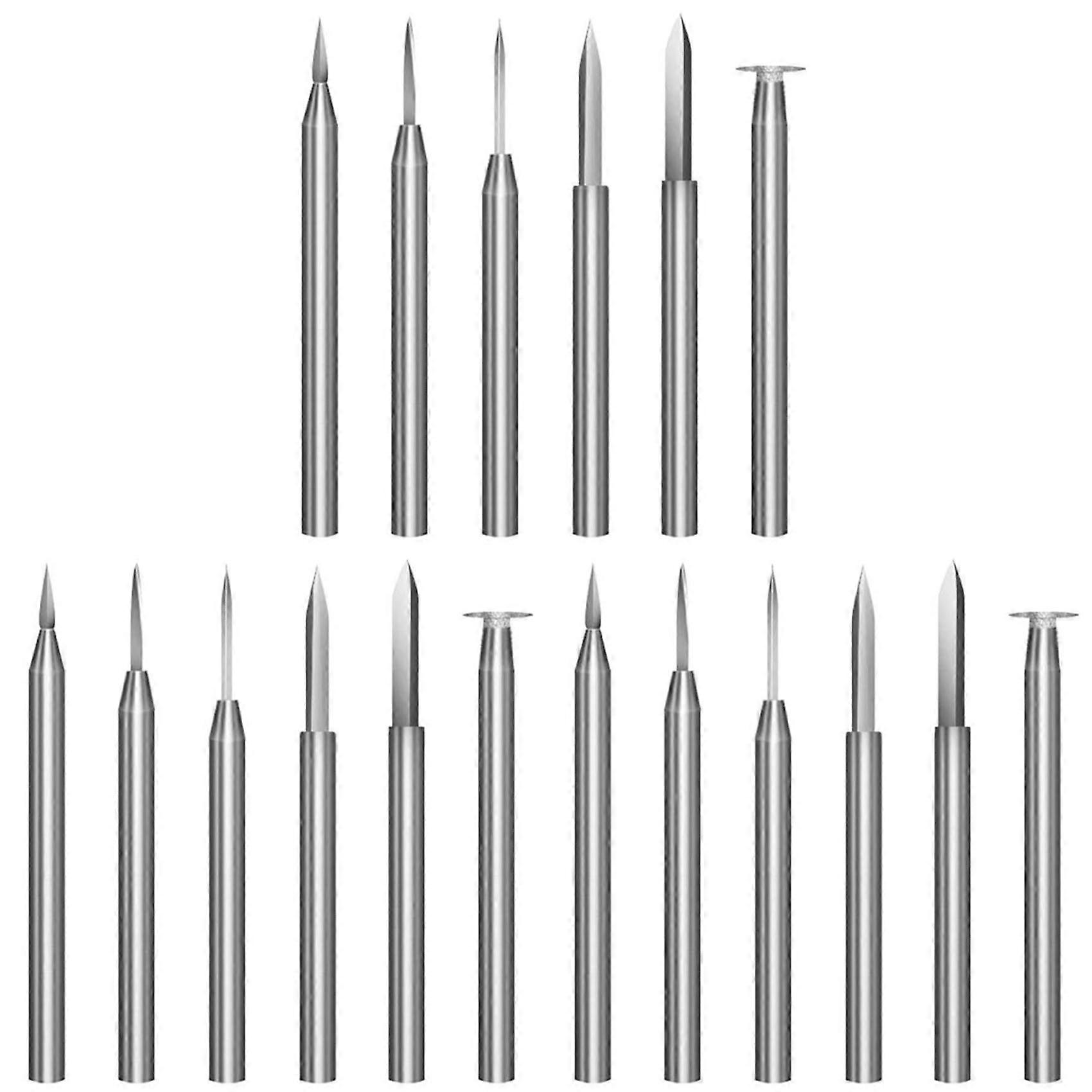 This high-speed steel 18pcs Wood Carving Drill Bits Set is the perfect tool to unlock your true crafting potential. The kit contains five different sizes (1mm, 1.5mm, 2mm, 3mm) thereby fulfilling all your wood carving needs. From wood carving, root carving, model making to micro-carving, these handcrafted tools are suitable for all types of intricate woodworking projects. An Perfect set to craft your own masterpieces. Crafted from durable and sturdy High-quality materials, these wood carving drill bits are highly resistant to wear and are not easy to break. Their firm and ergonomic design allow for efficient carving, intricate detailing while delivering a smoother finish. These versatile tools are designed to cater to both beginners and professionals, making them an essential tool for any woodwork enthusiast. Equipped with a sword-shaped pointed knife, these wood carving drill bits give you easy access in narrow areas and are typically used for drawing lines, wood carving, nuclear carving, lettering, and roughing. The set also includes a three-blade pointed carving bit suitable for carving, sculpting, polishing, drilling, and a diamond grinding head to restore blade sharpness quickly and extend its lifespan. Designed with a 1/8inch shank, these wood carving drill bits are compatible with for Dremel and most rotary tools, drills, and die grinders. This compatibility increases your carving reach, enabling you to work on wood effortlessly and safely, making your creative process more enjoyable and efficient. Material: Metal colour: Silver Package Contents: 18 x Wood Carving Drill Bits(picture style)