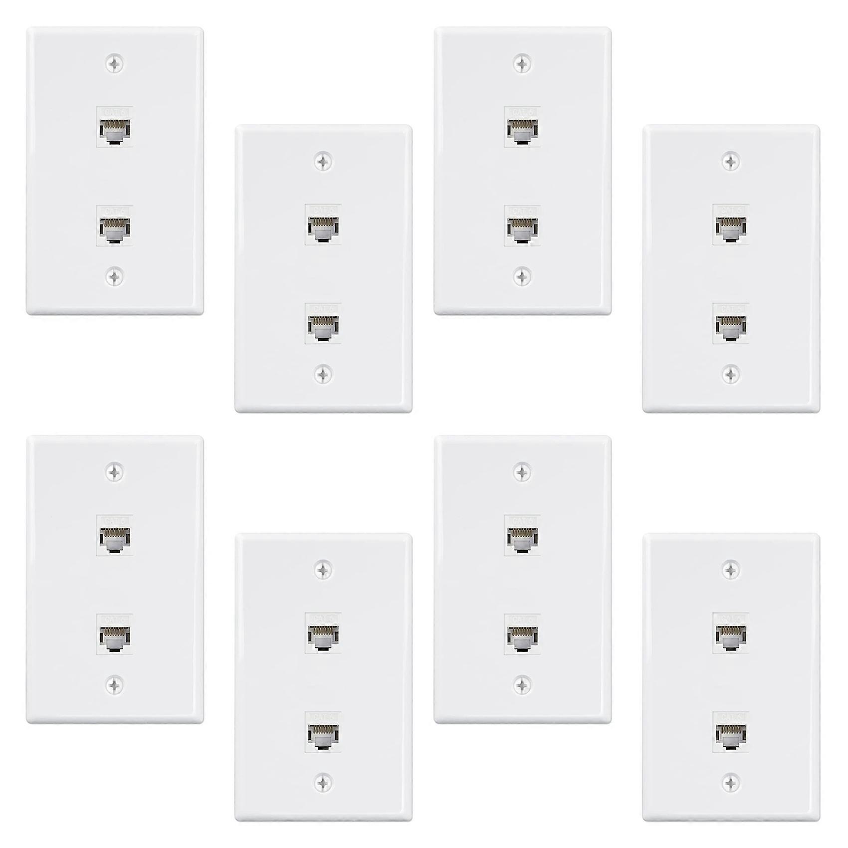 8 Pack 2 Port Ethernet Wall Plate, Cat6 Female to Female Wall Jack RJ45 Keystone Inline Coupler Wall Outlet, White