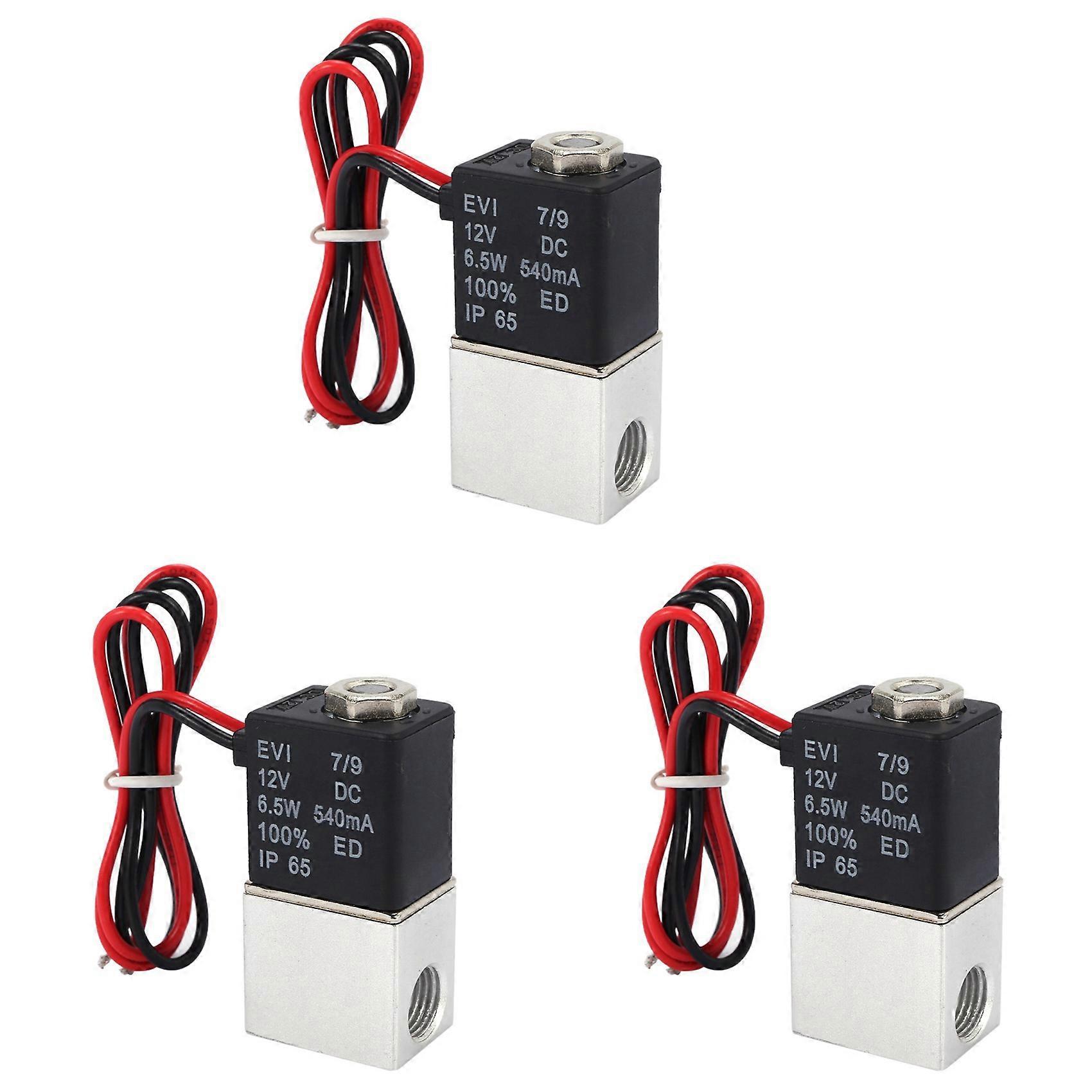 3X DC12V Solenoid Valve 1/4 Inch 2 Way Normally Closed Direct-Acting Pneumatic Valves for Water Air Gas