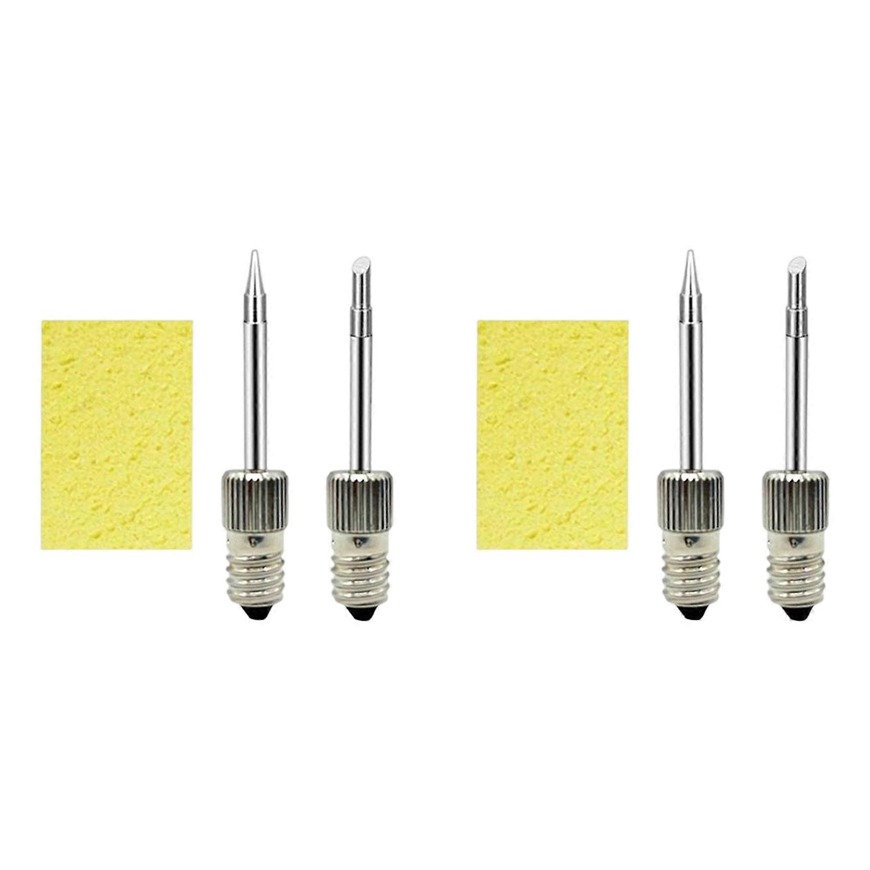 E10 Welding Head: The E10 soldering tips set will provide you with all the soldering iron accessories you'll need for maximum results. Features: Precision ground copper tips are plated with iron, nickel and chromium, long lasting use life. Easy to use, not easily oxidized. Premuim Quality: Thread soldering tip is finest quality brass materials, not easily oxidized, strong and durable and corrosion resistant. Suitable For: This USB welding head suitable for usb soldering iron head E10 interface battery soldering iron soldering iron head threaded soldering iron head. Easy to Use: All soldering iron tips can be used, after soldering, there will be tin slag on the soldering iron tip, just wipe it off with this sponge, and the tin slag will fall off. Colour:silver Material:brass Package Contents: 4 x Soldering Iron Tip(tip B+tip C) 2 X Cleaning Sponge