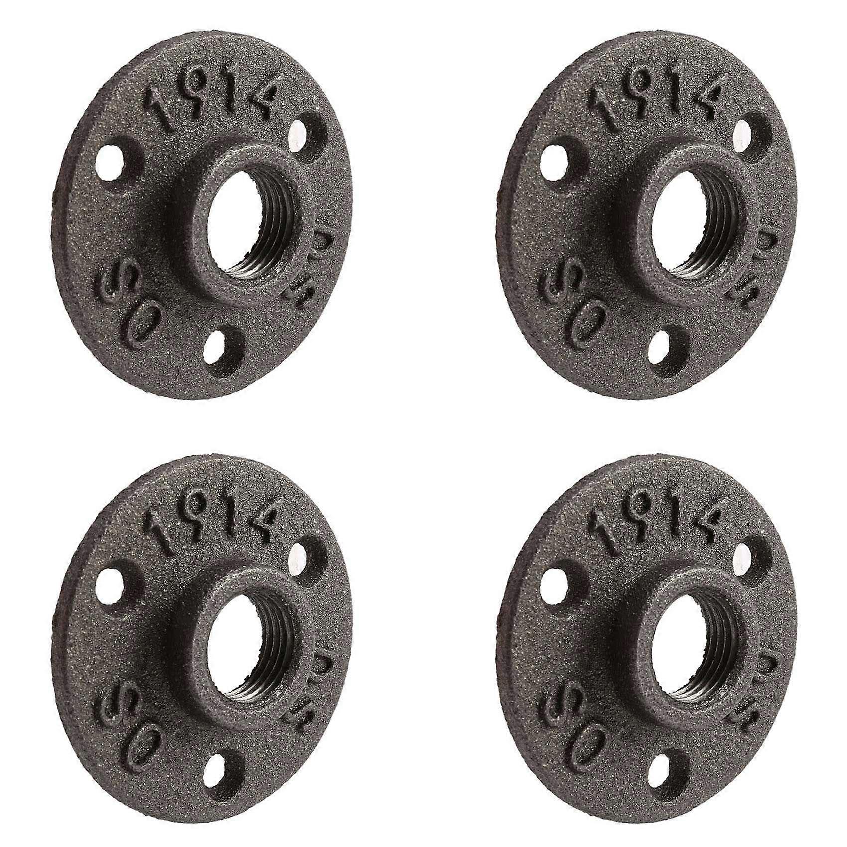 4pcs 1/2 Inch Black Cast Iron Pipe Fittings Floor Flange BSP Threaded