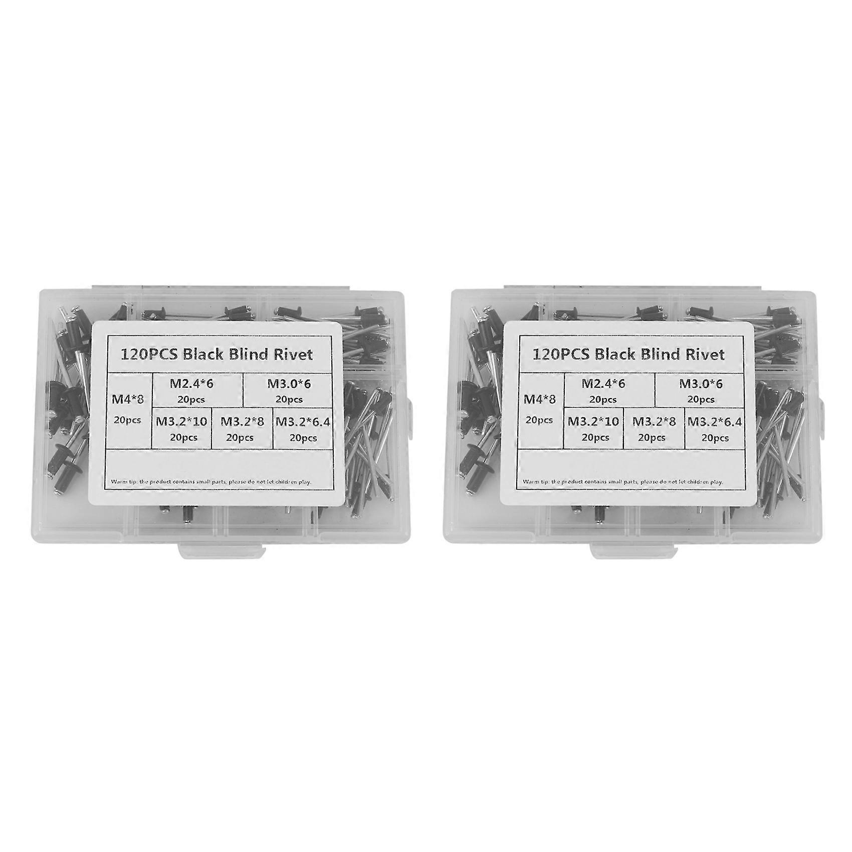 240Pcs M2.4 M3.0 M3.2 M4 Black Aluminium Blind Rivets Nail Decoration Rivets for Furniture Assortment Kit Hw078